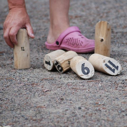 Besorge das Wurfspiel, das als Finnisches Wurfspiel, Mölkky