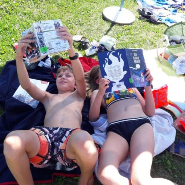 Das Angebot wurde sehr gut angenommen, immer wieder sah man ein Kind mit einem Buch unterm Arm über die Liegewiese flitzen,