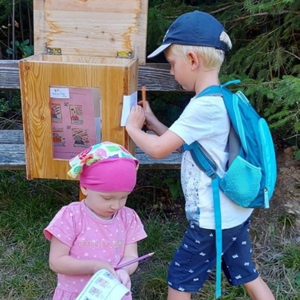 Im September 2021 wurde im Rahmen des Projekts der Weg genützt, um einen Story-Walk zu gestalten. Das Bilderbuch – Wählt Wolf – erschienen im Picus Verlag, wurde mit Genehmigung des Verlags auf die Stationen verteilt und so setzt sich die Geschichte von Briefkasten zu Briefkasten fort. Bei der zweiten Station können die Kinder selbst wählen und ihre Stimme abgeben, welches Tier sie zum neuen Chef am Bauernhof wählen würden. Das Ergebnis der Wahl (lt. Buch) erfahren sie dann beim nächsten „Briefkasten“. Bei der letzten Station gibt es dann online per QR-Code ein paar Fragen zum Buch und nochmals eine Umfrage zur Wahl. Als Belohnung können sich die Kinder einen Button mit ihren Wunsch-Kandidaten in der Bibliothek abholen bzw. mit der Button-Maschine selbst gestalten.