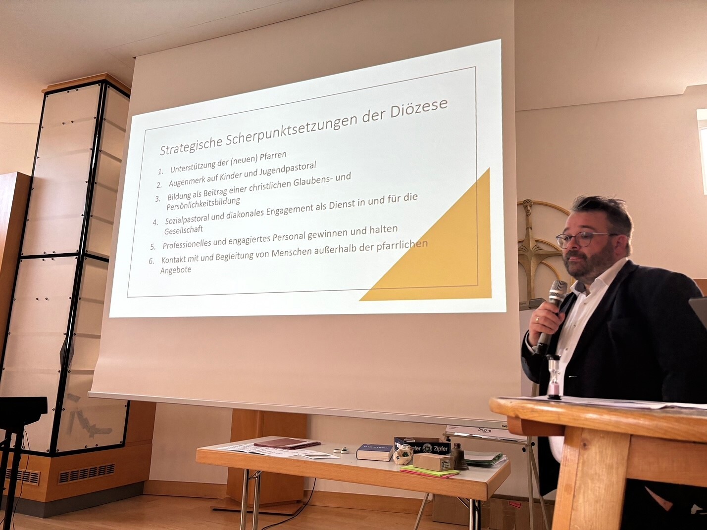 Daniel Neuböck, Bereichsleiter "Seelsorge und Liturgie" stellt die aktualisierten strategischen Ziele der Diözese Linz vor.