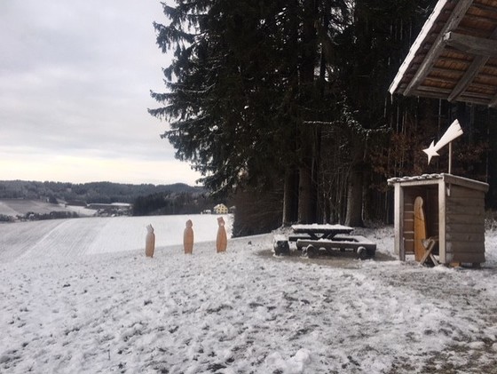Die Heiligen Drei Könige sind auch schon präsent, stehen aber mit etwas Abstand zur Krippe. Erst zum 6. Jänner werden sie nähergerückt.