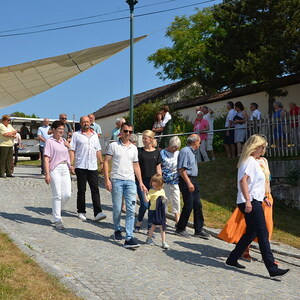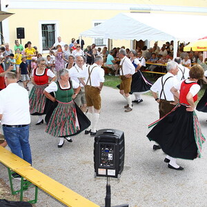 Bei Kaffee und Kuchen und später bei einem guten Essen genossen die vielen Besucher auf dem beschatteten Vorplatz des Pfarrhofes das Fest. Der Frühschoppen, gespielt vom Musikverein Grünbach, und anschließend noch von der Jugendkapelle „Muskitos“, brachte Volksfeststimmung ins Publikum.