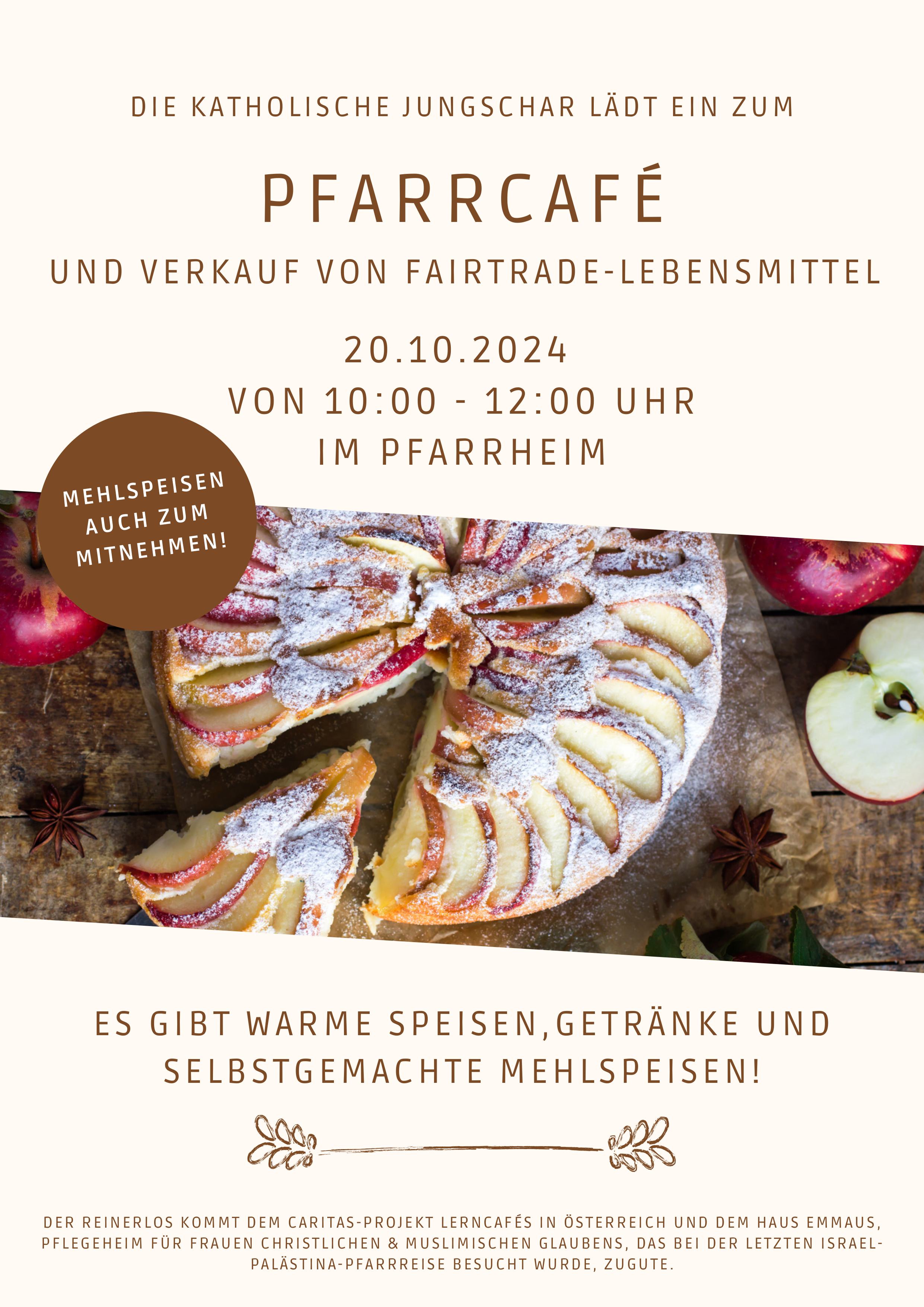 Am Sonntag, 20. Oktober 2024 laden Jungschar, Ministrantinnen & Ministranten von 10-12 Uhr zum Pfarrcafé ein.