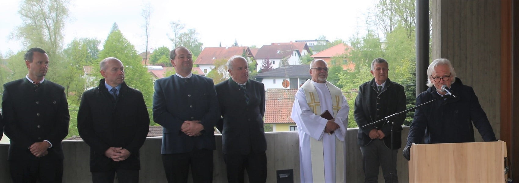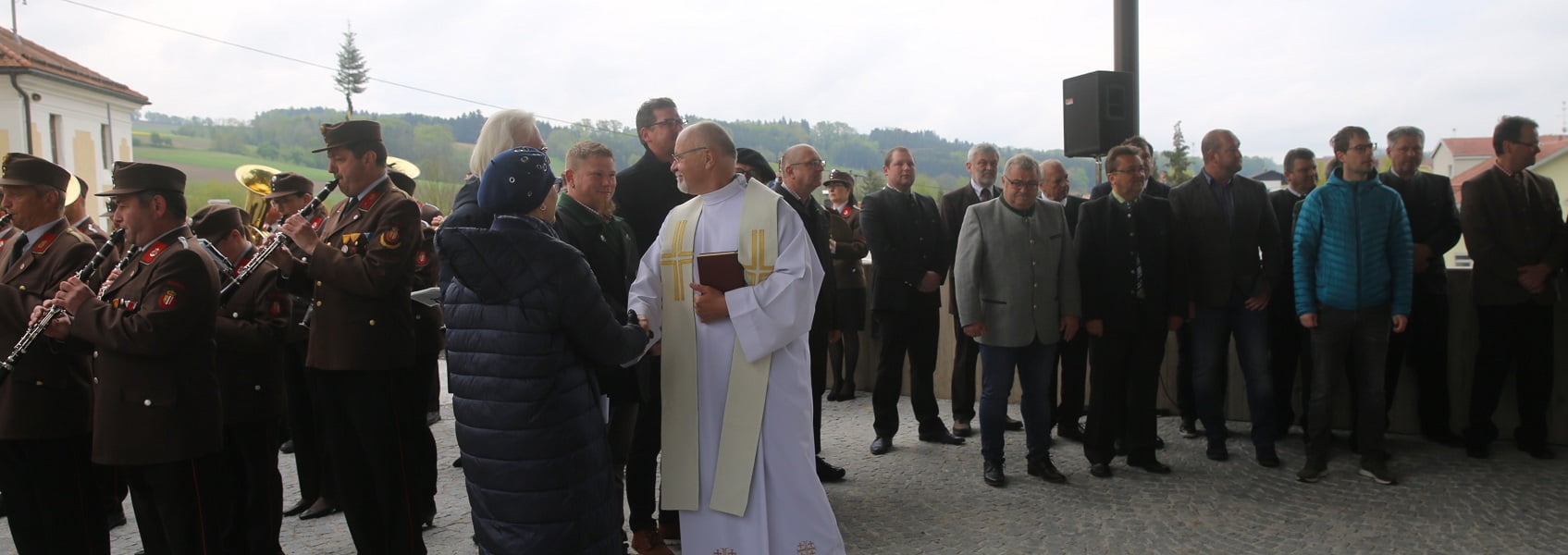 Nach der Messe in der Kirche umrahmte die Blasmusikkapelle die feierliche Einsegnung durch Pfarrer Thaddäus Kret .In seiner Ansprache betonte Bürgermeister G. Harant die Bedeutung der neuen Aufbahrungshalle, um für alle Verstorbenen verschiedenster Konfessionen eine würdige Verabschiedung zu ermöglichen.