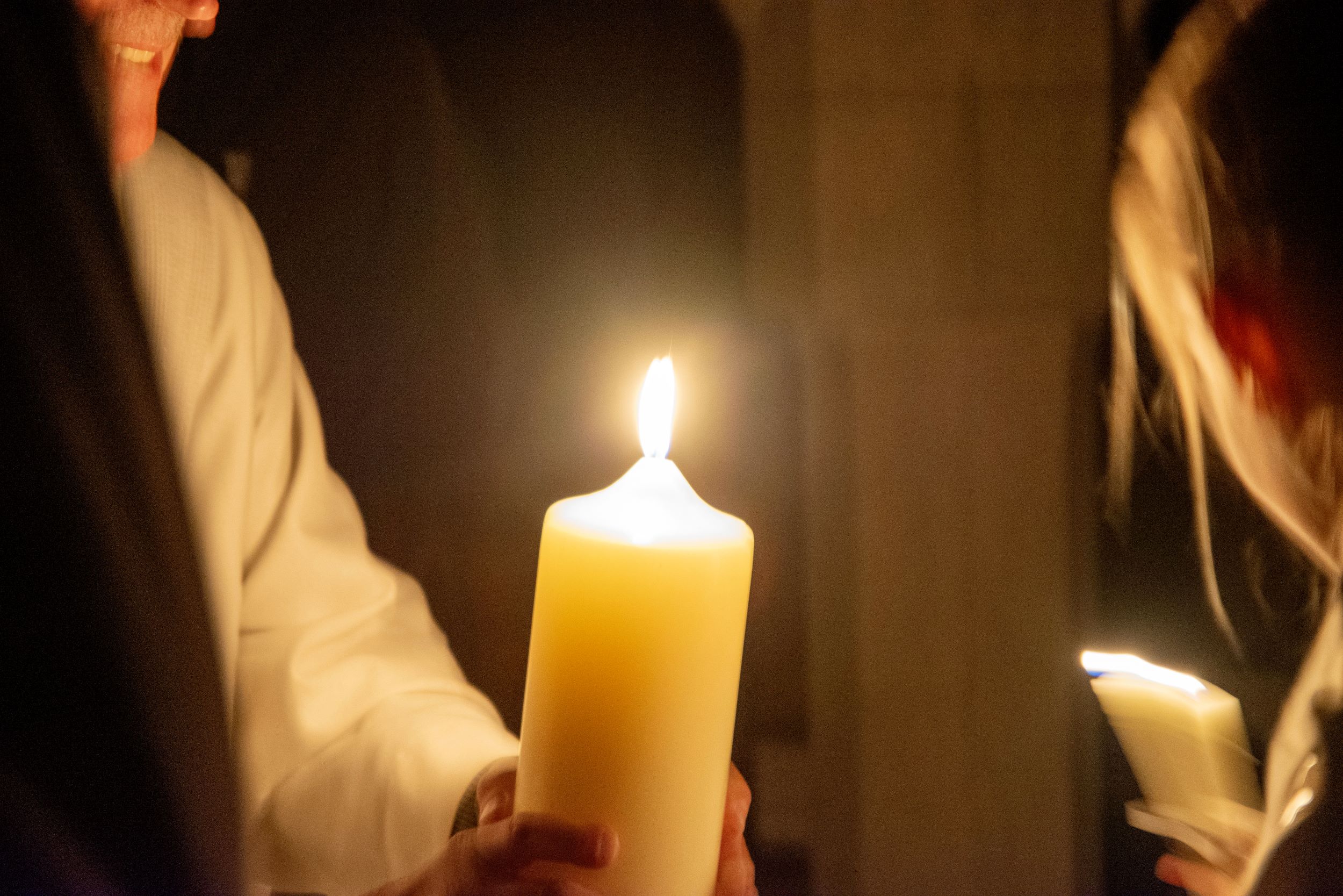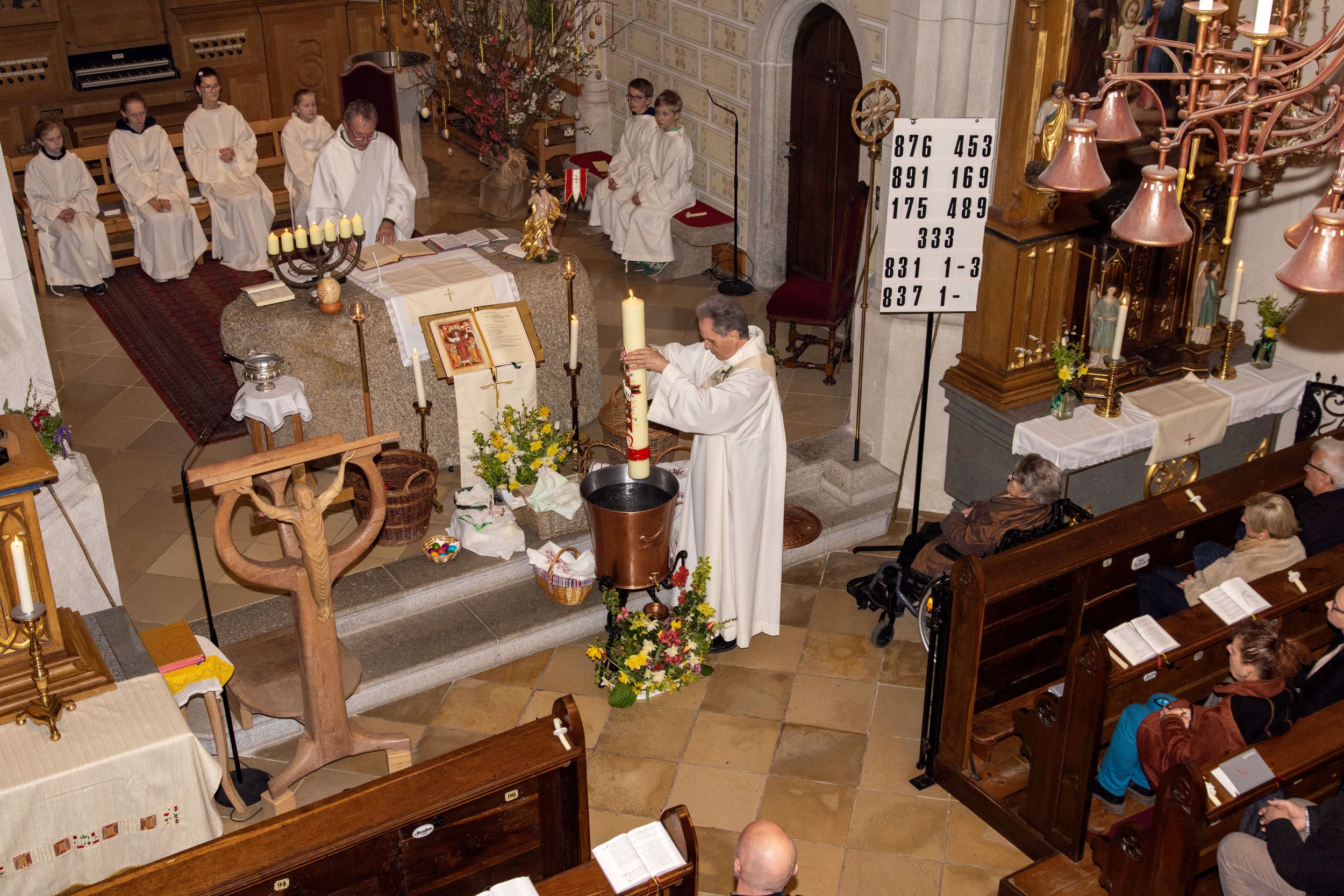 Die Lumen Christi-Rufe in Dunkelheit, die Erhellung des Kirchenraumes durch Weitergabe des Lichts der Osterkerze an die Gläubigen, die eindrucksvollen Lesungen, das Osterlob gesungen von Wolfgang Froschauer – alles trug dazu bei, den Sieg Jesu über den Tod auch für uns heute zu verdeutlichen.
