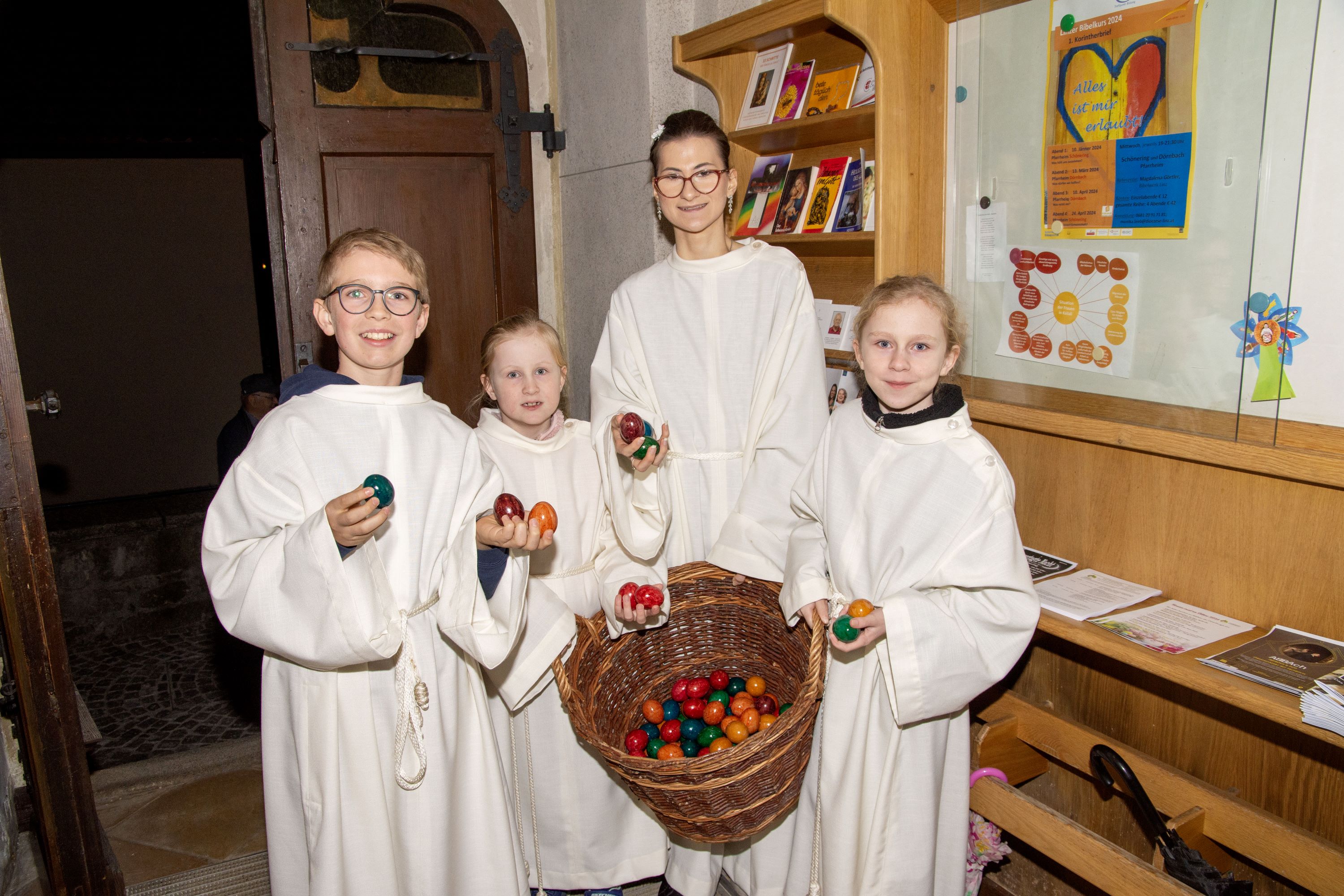 Nach dem Abschlusslied "Halleluja, Jesus lebt" teilten die Minis in traditioneller Weise die von der Katholischen Männerbewegung gespendeten Ostereier aus.