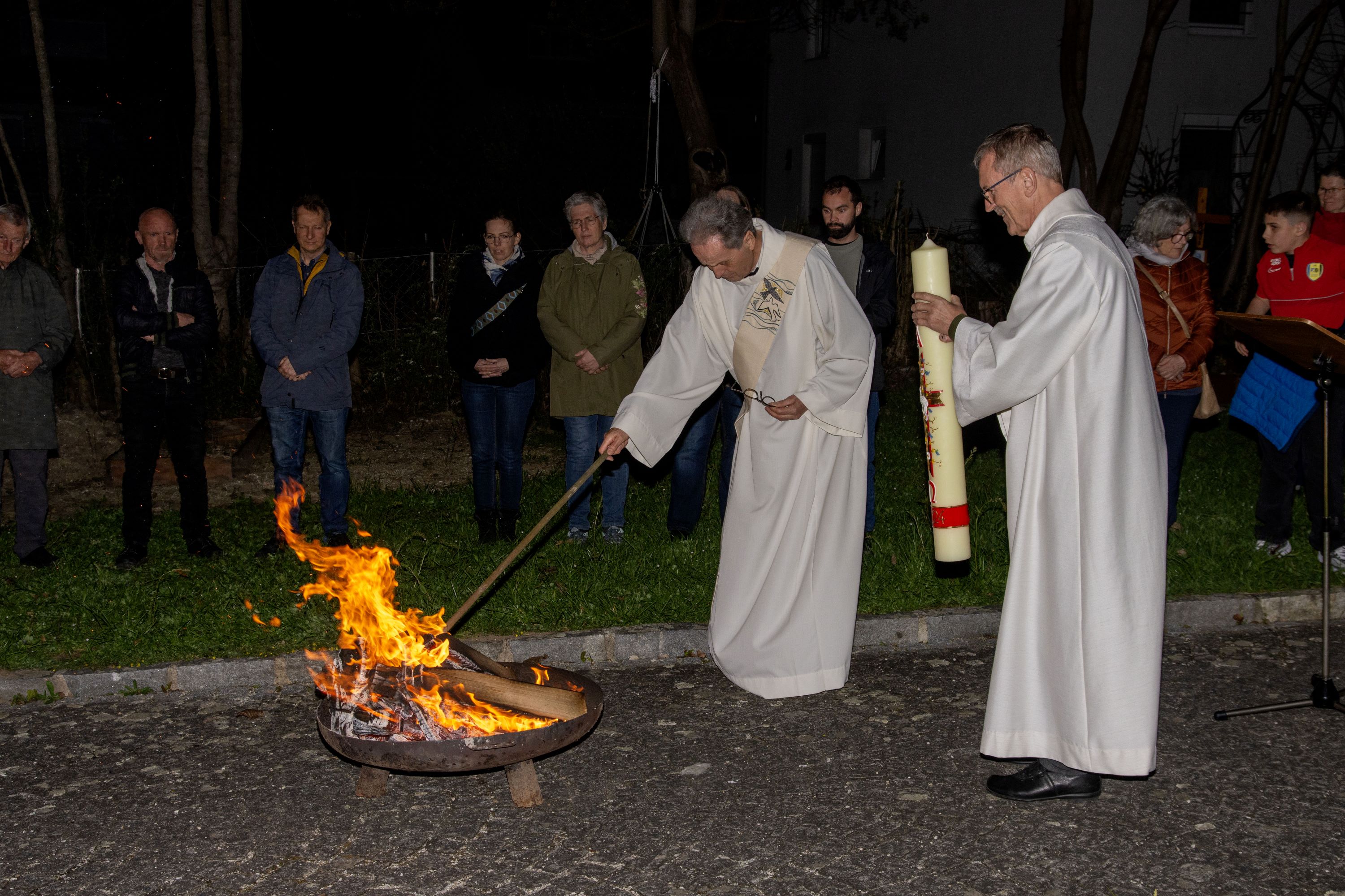 Die Osterkerze wird am Osterfeuer entzündet.