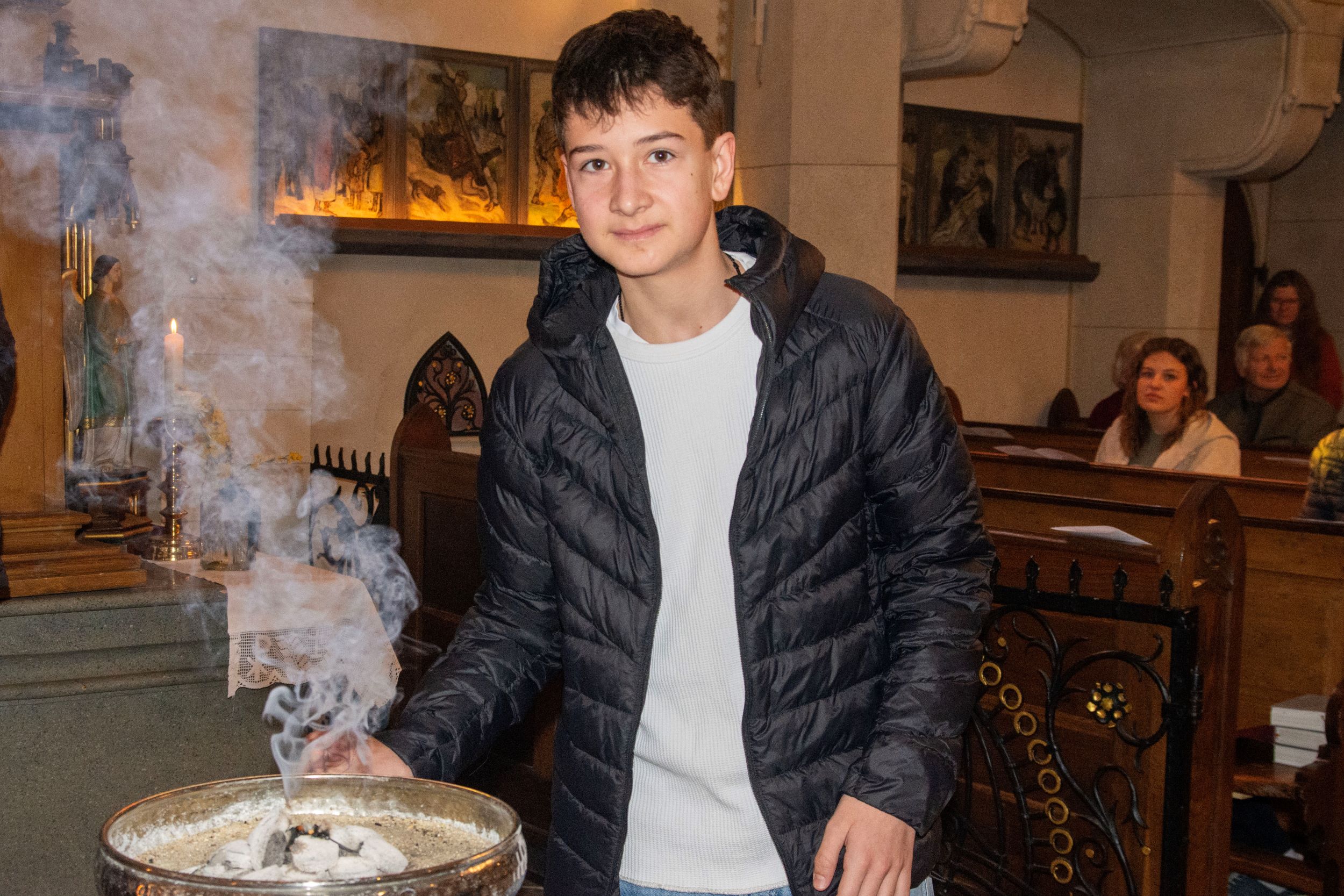 Anschließend waren die Firmlinge eingeladen, ein Weihrauchkorn in die Schale zu geben, bevor sie von ihren Patinnen und Paten im Altarraum erwartet wurden.