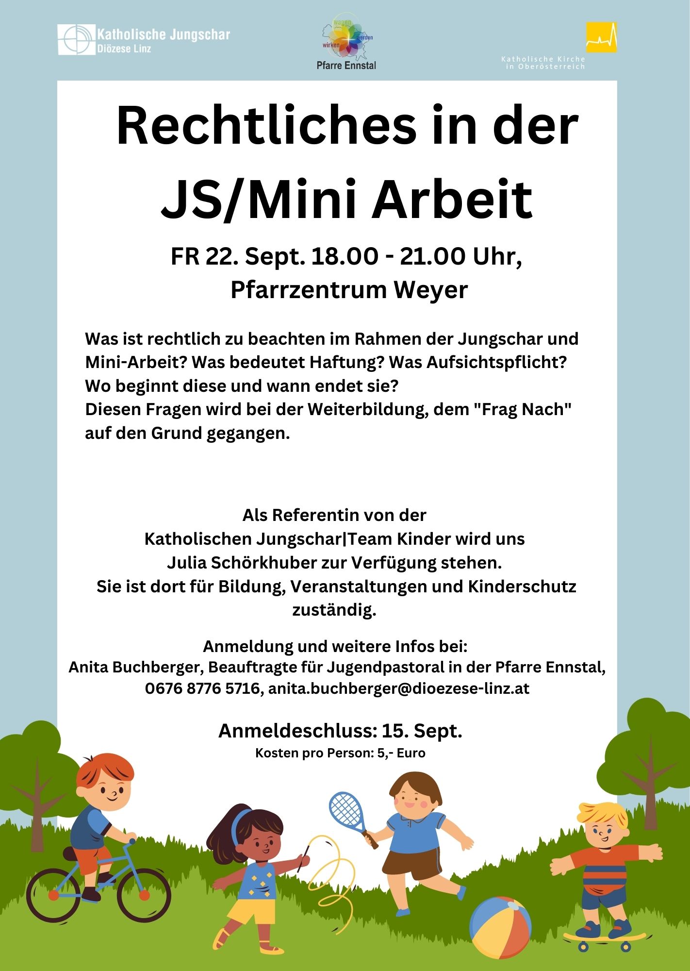 Nütze die Chance die Weiterbildung direkt in unserer Pfarre Ennstal wahrzunehmen und vernetze dich an diesem Abend mit anderen JS und Mini Leiter:innen.