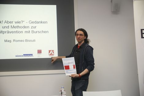 Ein weiterer Referent an diesem Nachmittag war Mag. Romeo Bisutti aus Wien, der als (Gewalt-)Berater den Blick auf diejenigen richtet, die mit der Situation der Gewalt beim Erwachsenwerden konfrontiert sind. Zunächst stellte er die „einfache" Frage, was von jedem und jeder der Anwesenden als Gewalt eingeschätzt wird (Beispiel Boxkampf) und verwies auf unterschiedlichstes Material und Hilfestellung, die in den letzten Jahren aufgrund von Initiativen entstanden sind. Je früher über Konfliktsituationen gesprochen wird, desto besser – denn „Feuerwehr-Aktionen" zeugen meist schon von klaren und verhärteten Fronten, wo eine kurzfristige Lösung angestrebt wird, aber dies (meist) nachhaltig keinerlei Veränderung bewirkt. Der Vortrag war mit praktischen und auflockernden Übungen versehen, sodass alle TeilnehmerInnen gefordert waren.