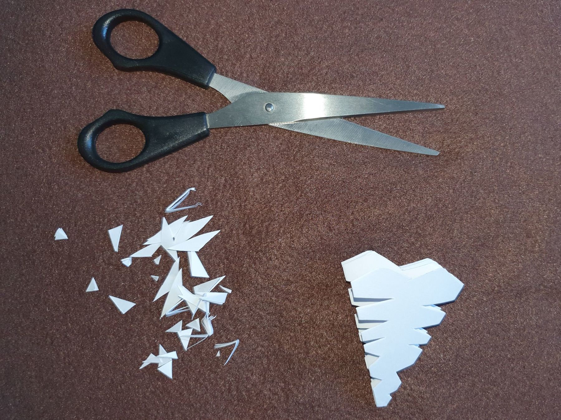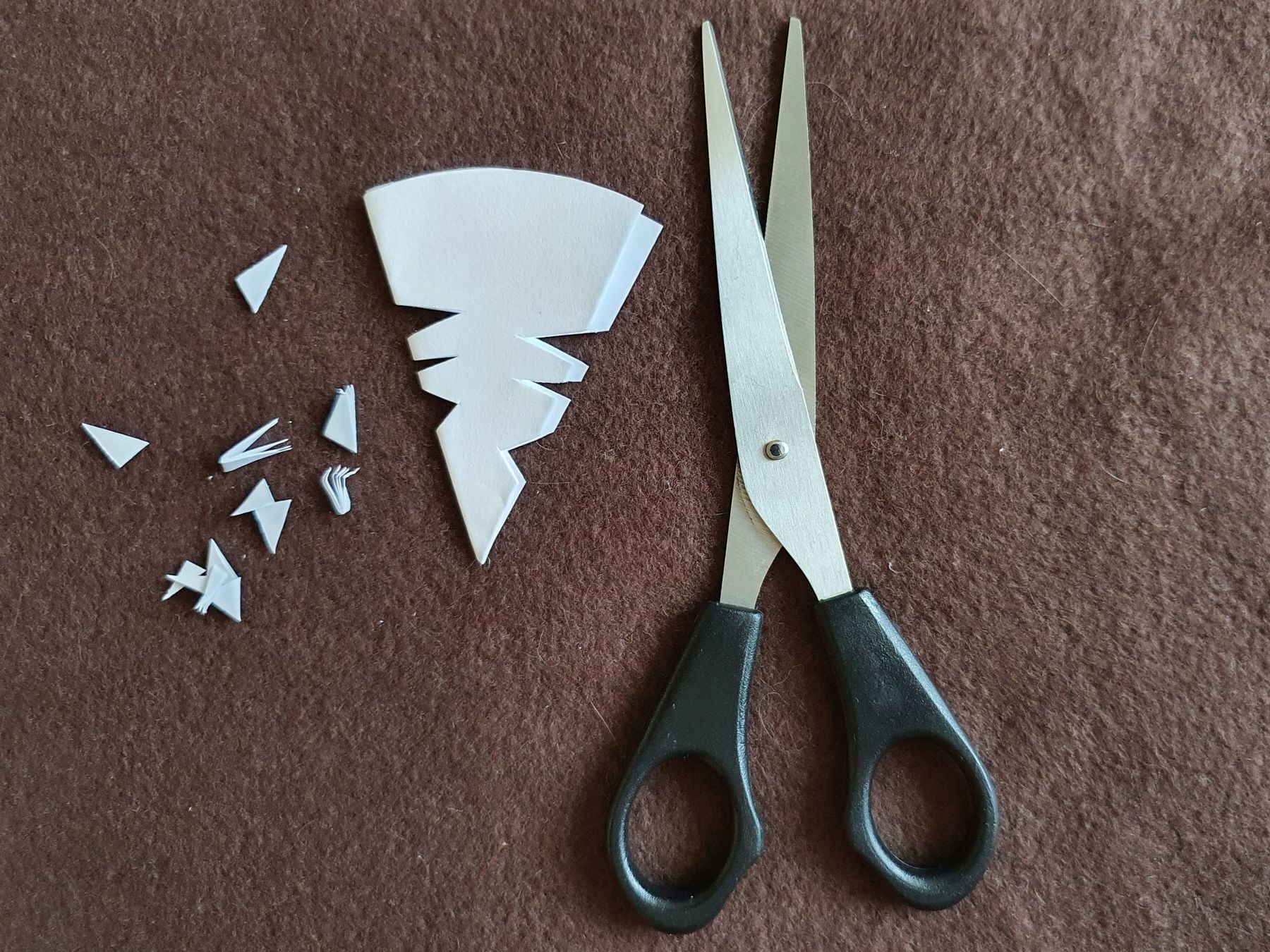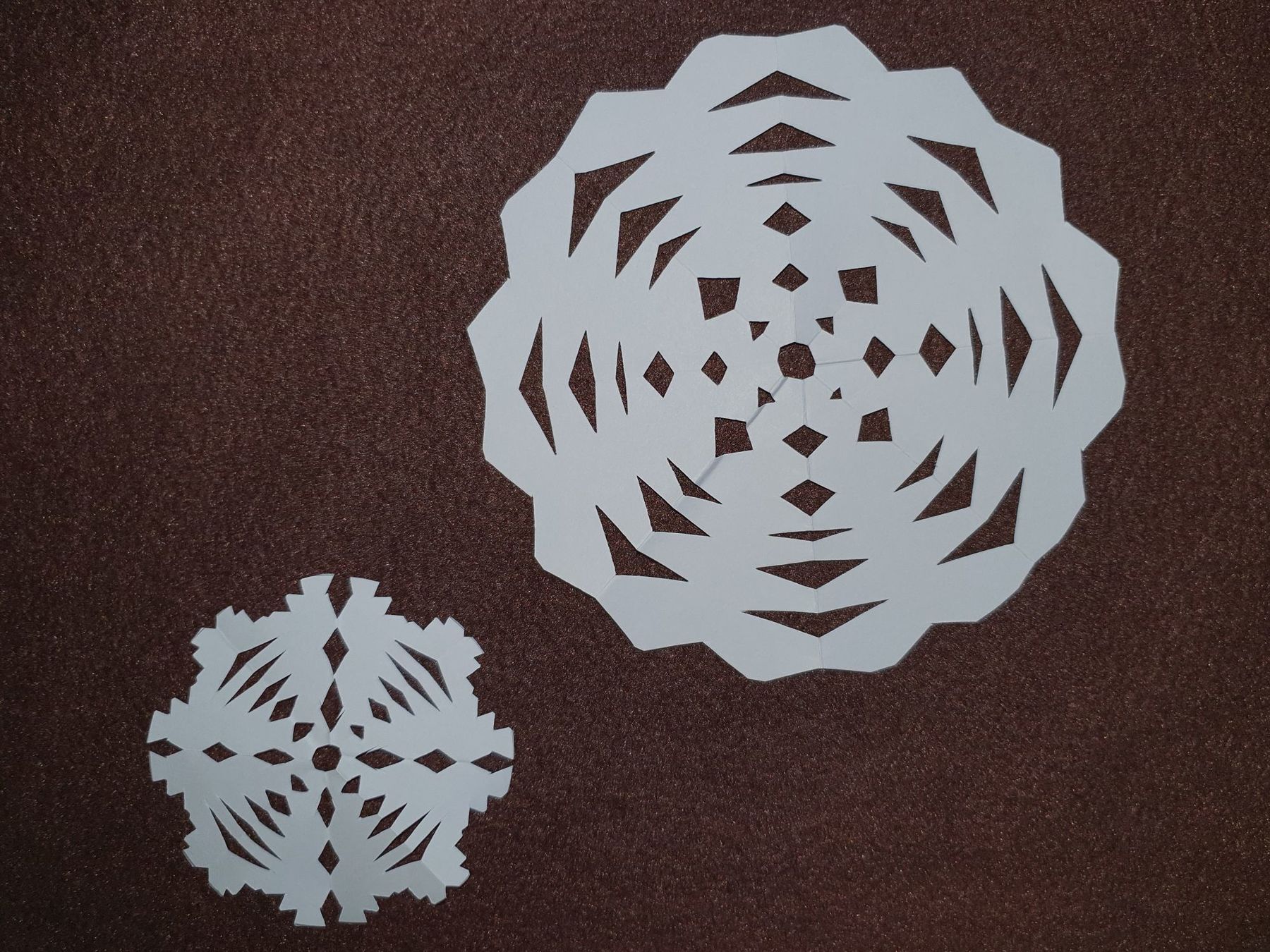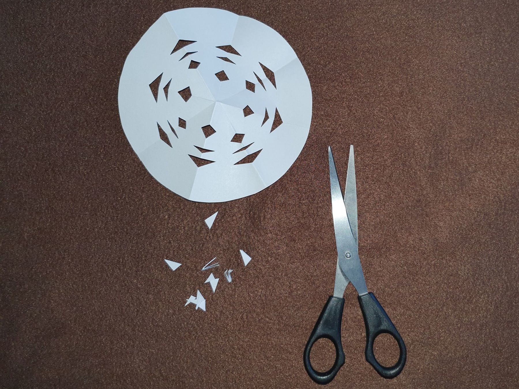 Wenn du die obere, gebogene Seite deines "Pizzastücks" nicht einschneidest, bekommst du eine runde Schneeflocke.