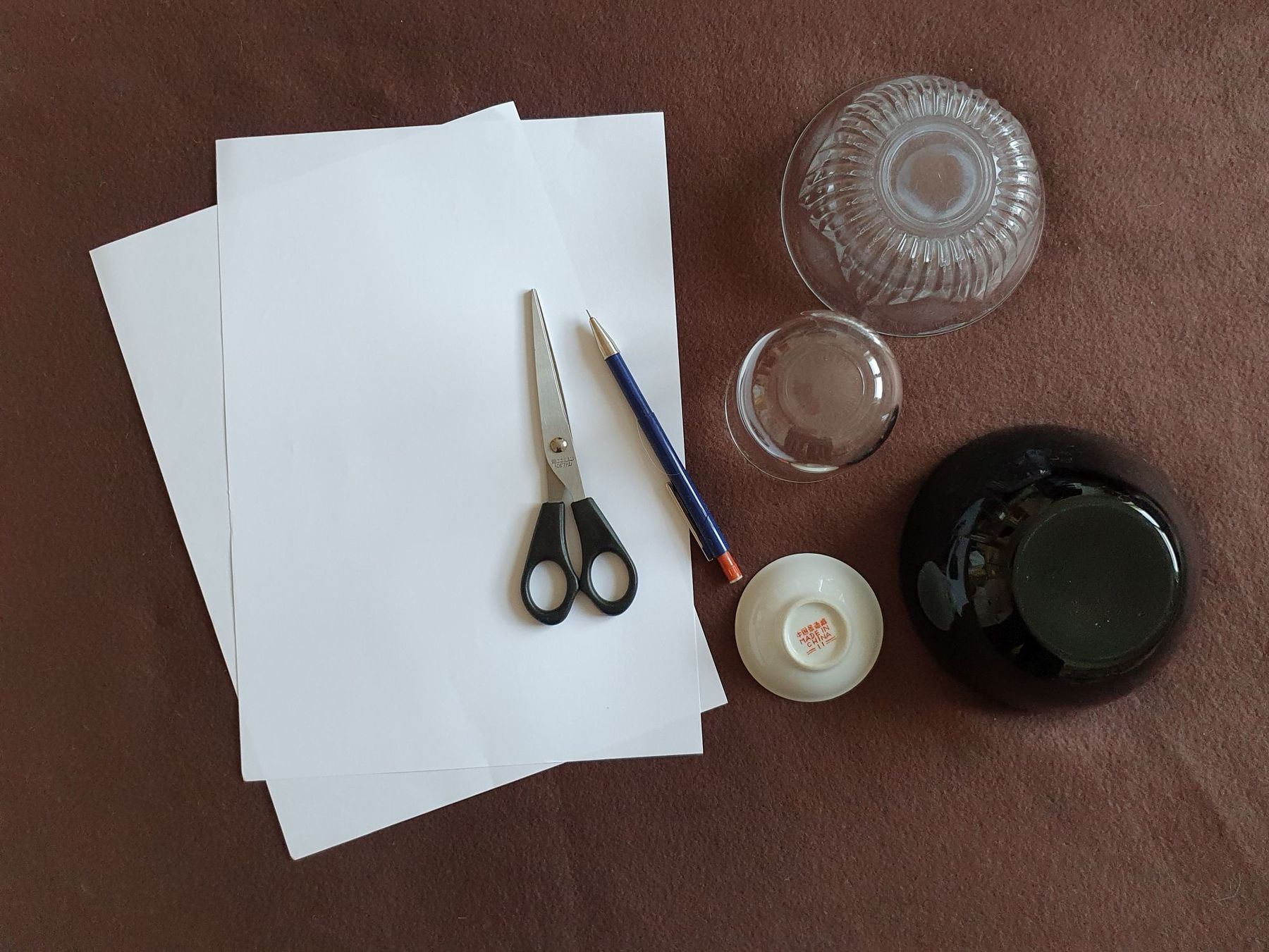 Zeichne mit Bleistift einen Kreis auf das Papier und schneide den Kreis aus. Du kannst natürlich auch gleich mehrere (verschiede große) Kreise vorbereiten (Bilder 02 und 03).