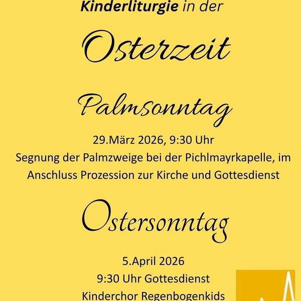 Am Palmsonntag, 29. März 2026, um 9:30 Uhr beginnt die Feier mit der Segnung der Palmzweige bei der Pichlmayrkapelle. Anschließend ziehen wir in feierlicher Prozession zur Kirche und feiern dort den Gottesdienst.