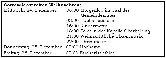 So 21.12.25, 17-19 Uhr, Ort: Pfarrzentrum Treffling