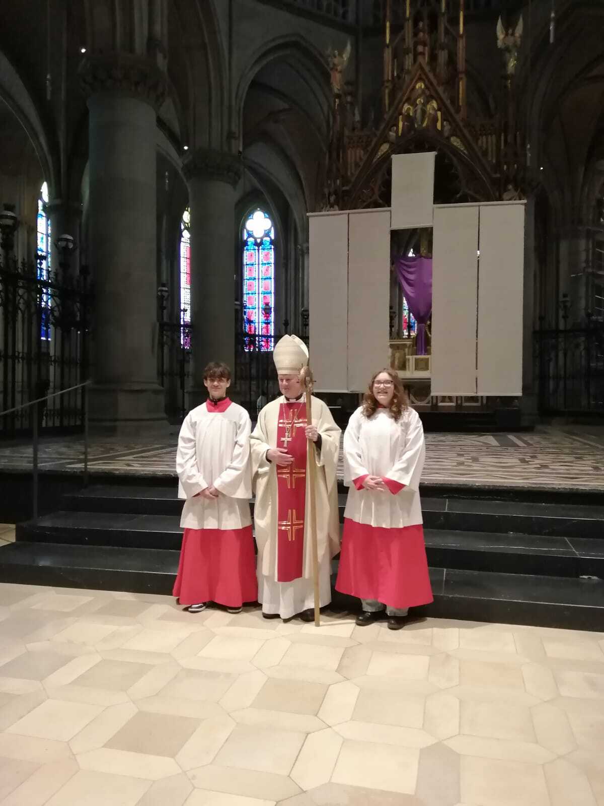 Bei kalten Temperaturen wird es im Ministrantendienst oft kalt um die Ohren - besonders im Außeneinsatz bei Beerdigungen. Daher hat eine anonyme Spenderin unsere Ministrant:innen mit schwarzen Hauben und Handschuhen ausgestattet. Schwarz gilt außerdem als Zeichen der Trauer und des Respekts gegenüber den Verstorbenen. Die würdevollen Accessoirs können von nun an bei Beerdigungen getragen werden.