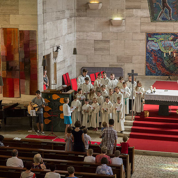 Der Rosenkranz wird an Wochentagen vor der Messfeier gebetet.