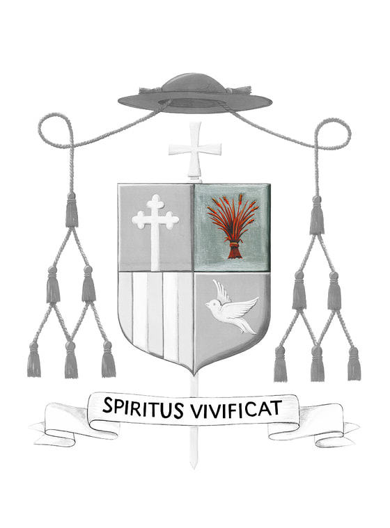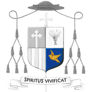 Im Spruchband befindet sich der Wahlspruch von Bischof Dr. Manfred Scheuer: "Spiritus vivificat – Der Geist macht lebendig."