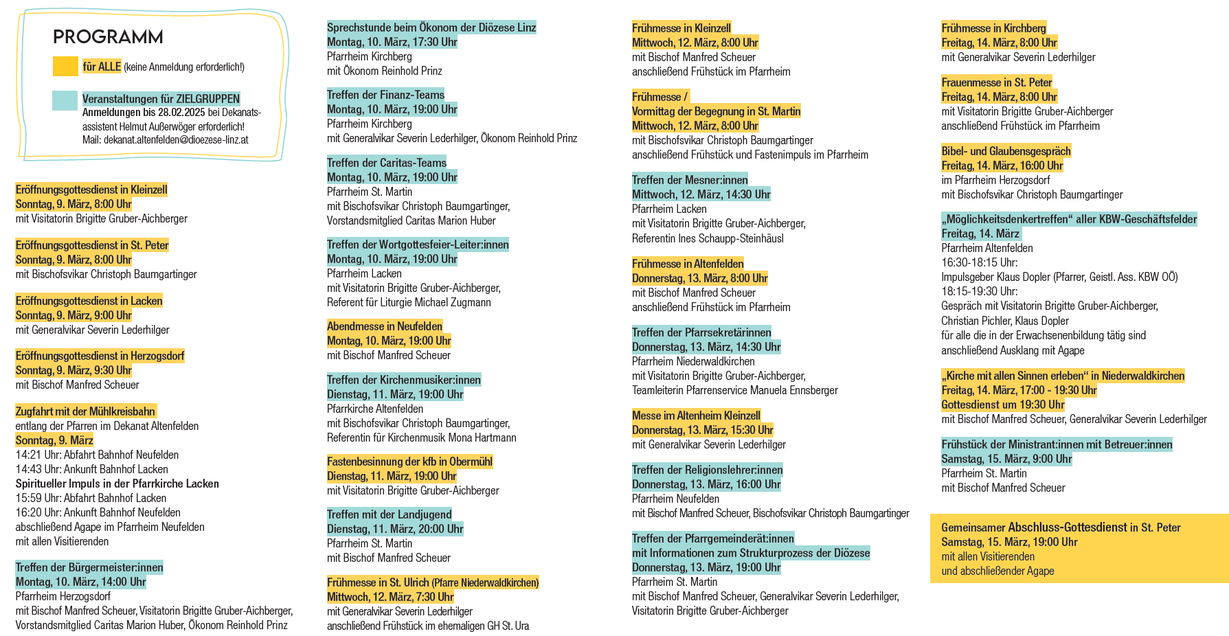 Am Sonntag, den 28. September, durfte die Pfarre Altenfelden ein besonderes und festliches Ereignis erleben: In einer würdig gestalteten und gut besuchten Feier wurden vier Frauen und ein Mann offiziell in ihren Dienst als Seelsorge-Team gesendet. Den feierlichen Gottesdienst leitete Herr Generalvikar Severin Lederhilger, der in seiner Ansprache die gemeinschaftliche Verantwortung für eine lebendige Seelsorge betonte.