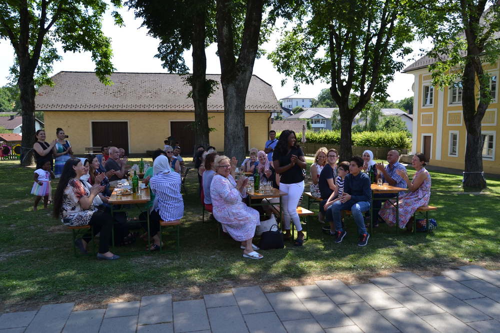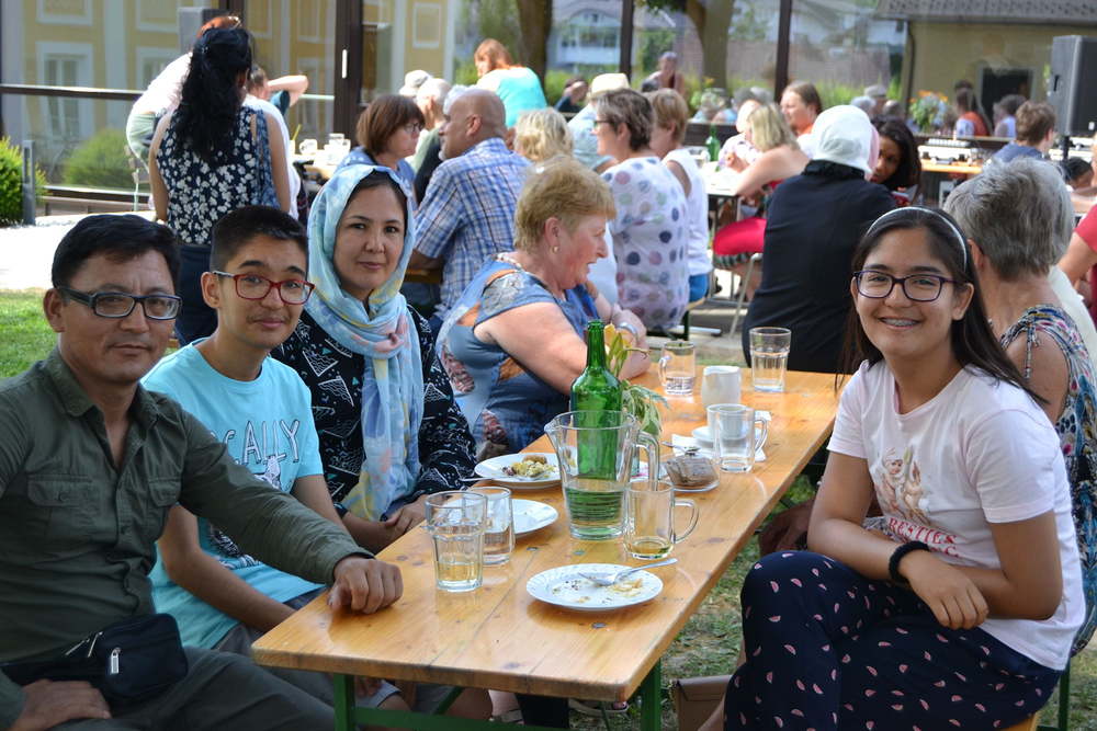 Der Einladung unter dem Titel „ÖsterreicherInnen begegnen Menschen aus nah und fern“ waren rund 75 Menschen gefolgt, die sich bei herrlichem Wetter im Schatten des Pfarrgartens bei Kuchen und guter Musik unterhielten. Das Besondere: Von 0 bis 70 Jahren und von Paraguay über Österreich bis Afghanistan sowie von Frankreich bis Nigeria waren verschiedenste Nationen und Altersgruppen vertreten. Auch eine Gruppe BewohnerInnen des Betreuten Wohnens der Caritas in Andorf folgte der Einladung.