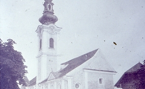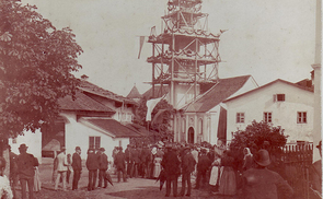 Die Kreuzsteckung am 25.6.1893 nach dem Neubau des Kirchturmes An der Kirchturmspitze Dombaumeister Matthäus Schlager
