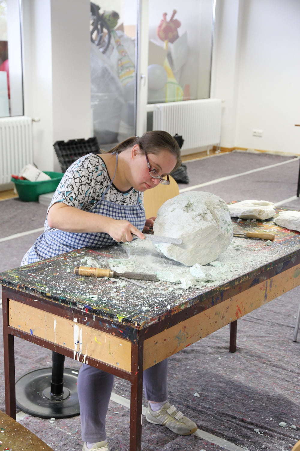 „Eine Beeinträchtigung beeinträchtigt nicht das künstlerische Potential. Das haben wir uns schon vor 22 Jahren gedacht. Damals legten wir das Fundament dafür, das künstlerische Schaffen der Menschen in St. Pius zu fördern“, sagt Theresia Klaffenböck, die von Anfang an die Gruppe leitete. Gemeinsam mit Künstlerin Andrea Hinterberger gibt sie den TeilnehmerInnen Impulse, wenn sie nicht mehr weiter wissen, und überlegt mit ihnen, mit welcher Technik und welchem Material die Einfälle am besten umsetzbar sind. Einmal im Jahr bekommt die Gruppe außerdem in einem einwöchigen Workshop neue Inspirationen von externen Kunstschaffenden.