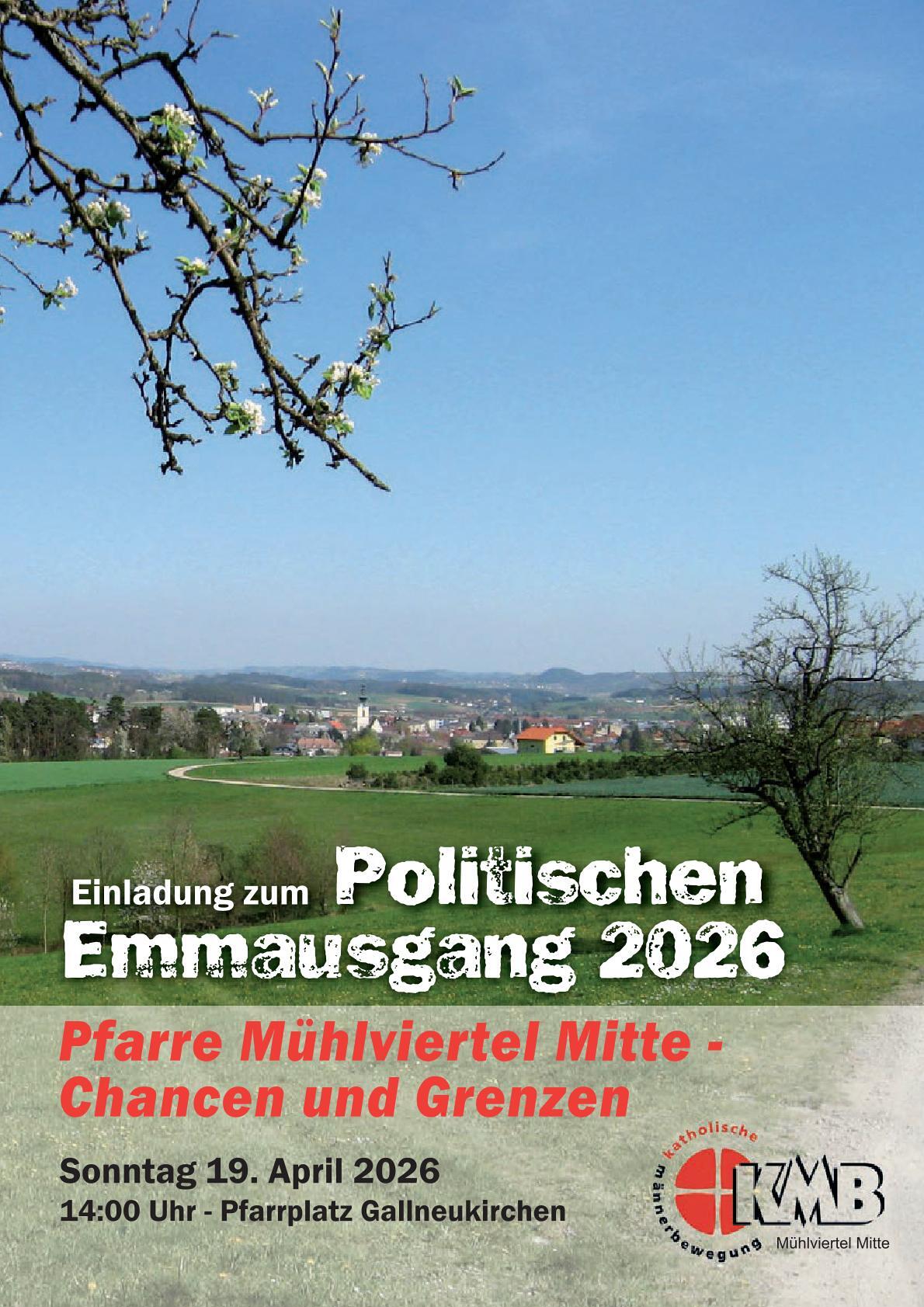Politischer Emmausgang So 19.04. 14 Uhr | Pfarrplatz Gallneukirchen Einladung zum Politischen Emmausgang 2026 - Pfarre Mühlviertel Mitte - Chancen und Grenzen