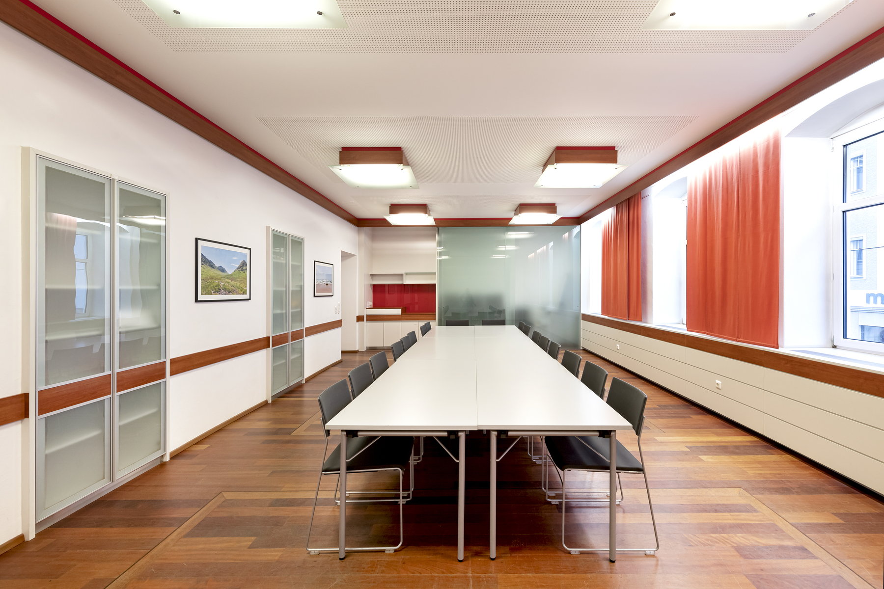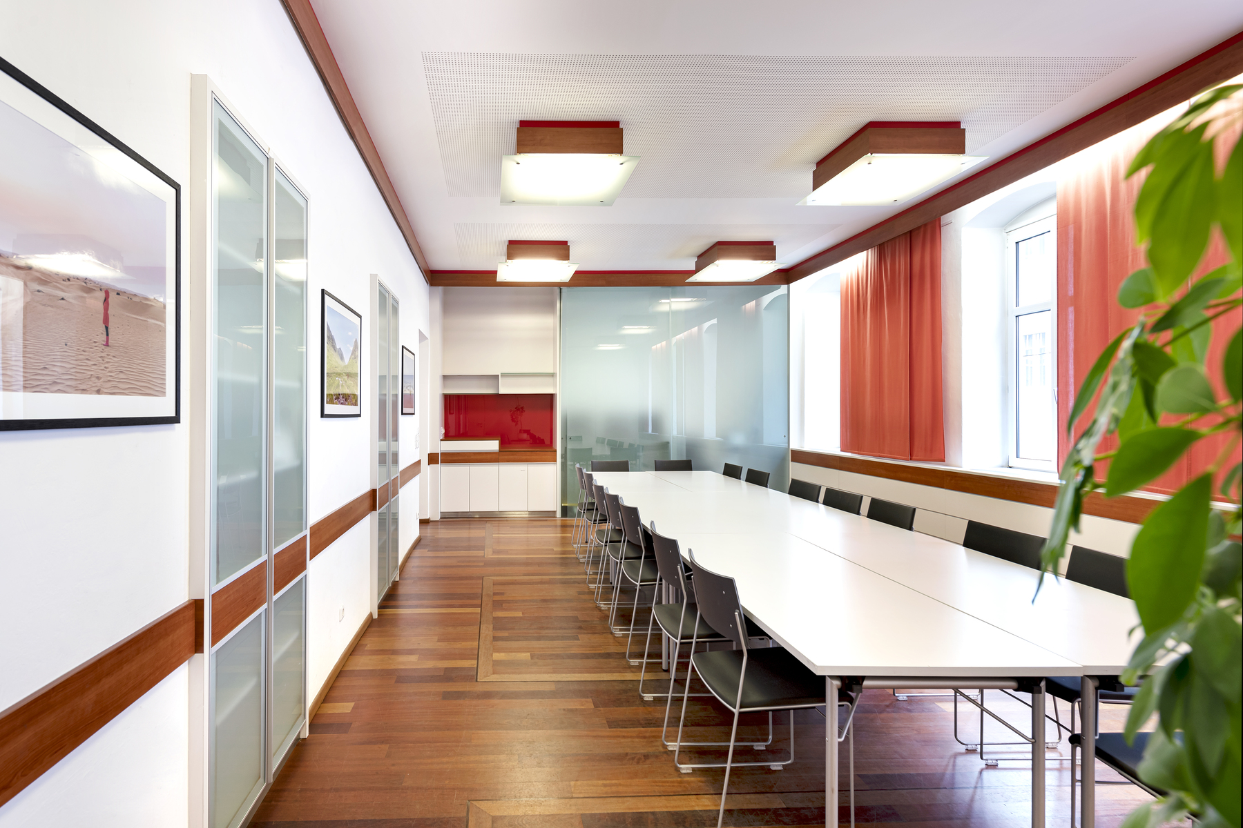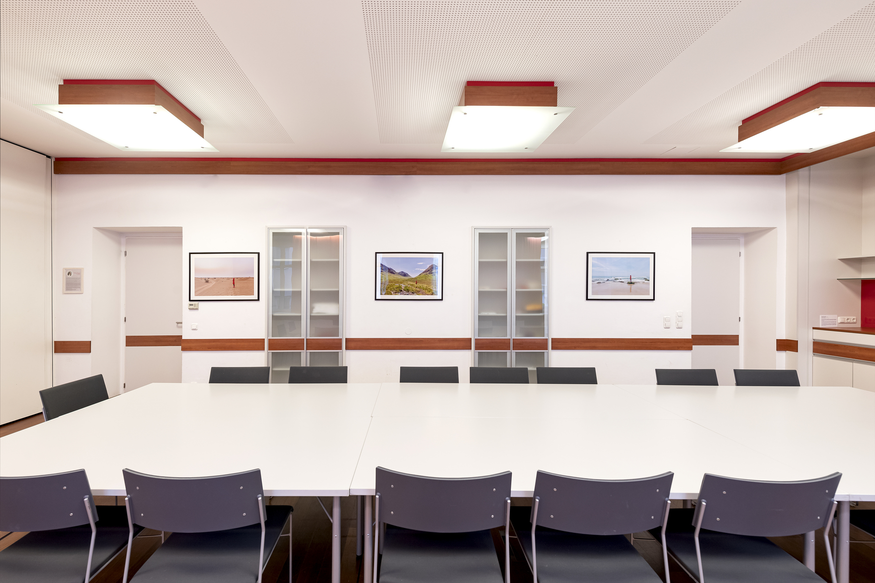 Folgende Bestuhlung ist möglich: Kinobestuhlung, U-Form, Vorlesung/Schule, Tischkreis, Sesselkreis mit Tischen an der Wand