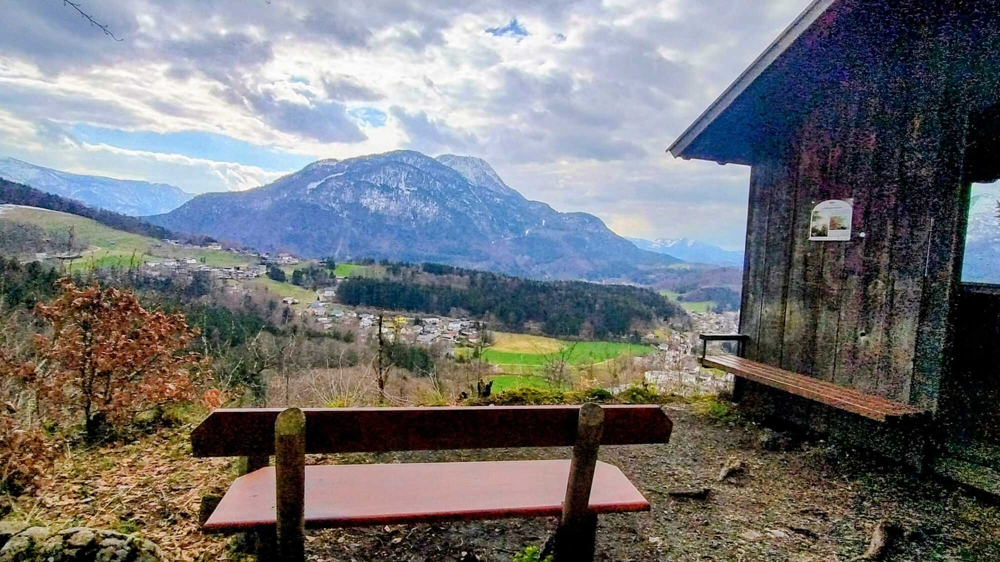 Blick in die Pfarre vom Friedensfenster Wolfsegg aus