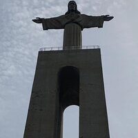 Erster Tag in Portugal: Lissabon Man beachte die große Brückeund die Christus Statue.In ihrem Inneren birgt sie eine...