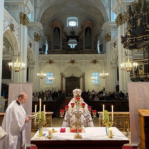 Am Sonntag, 17. November feierte die ukrainisch griechisch katholische Gemeinde im Alten Dom das Patrozinium des Hl. Josaphat. Der Seelsorger der Gemeine, P. Andrii Kityk, durfte den Festgottesdienst gemeinsam mit Kirchenrektor Dr. Slawomir Dadas, dem Generalvikar Yurii Kolasa aus Wien und dem Bischof Bryan Baida aus dem kanadischen Toronto feiern.