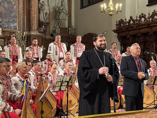 Mit einleitenden Worten eröffnete Pater Andrii von der Pfarre St. Josaphat den Abend. Er sprach über die bedeutende Rolle der Musik, besonders in Zeiten des Krieges in der Ukraine: als Quelle von Trost, Identität und Hoffnung, die Menschen verbindet und inneren Halt schenkt, auch in schwersten Zeiten.