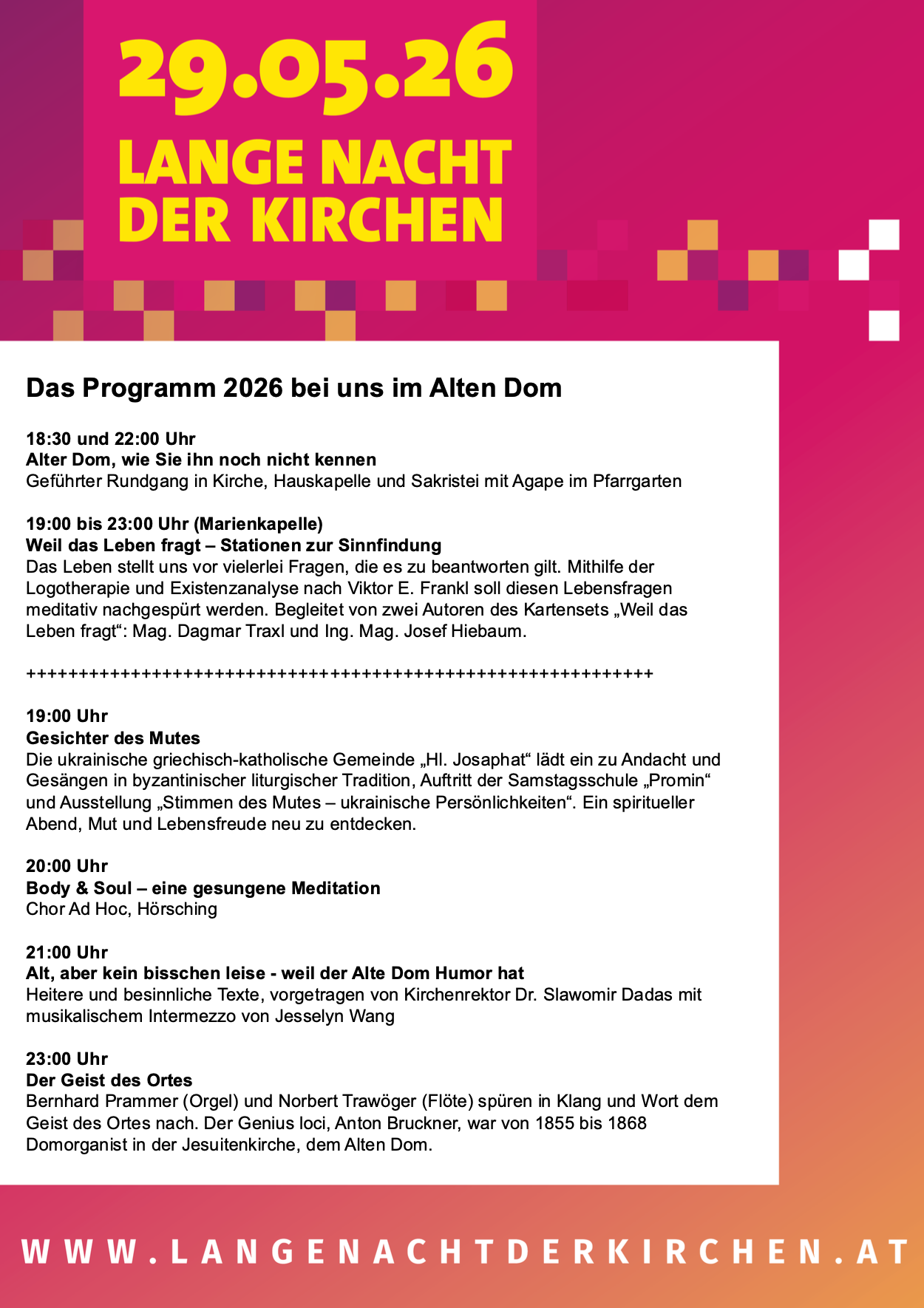 Auch bei uns im Alten Dom wird es ein abwechslungsreiches Programm geben - herzliche Einladung dazu!
