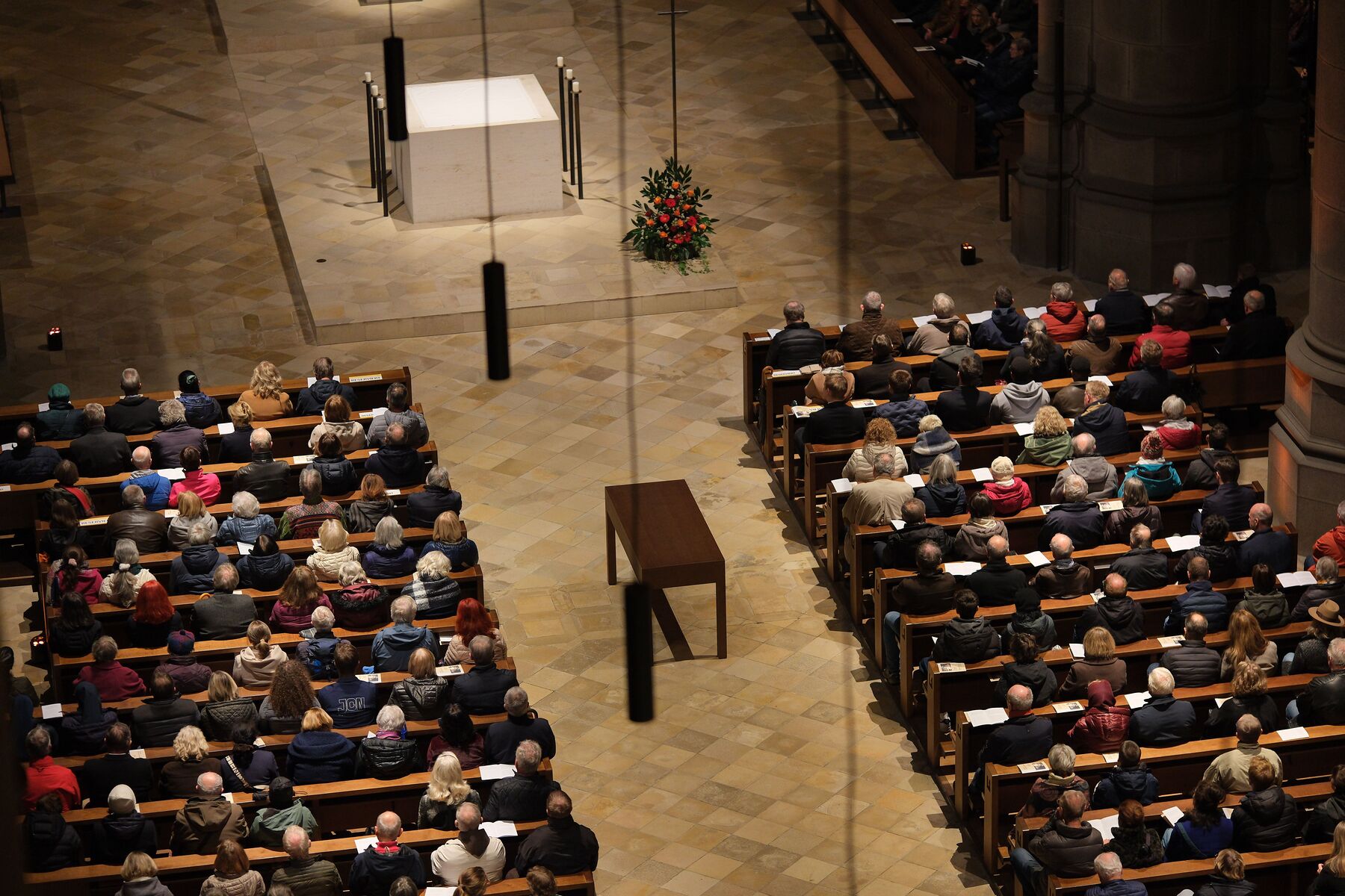 In seiner Begrüßung wünschte Bischof Manfred Scheuer den Besucherinnen und Besuchern "Momente und Zeiten der Ermutigung, der Heilung, des Trostes, der Lebensfreude, der Ahnung vom Geheimnis Gottes" und erbat den Segen Gottes für den neuen Domorganisten Gerhard Raab.