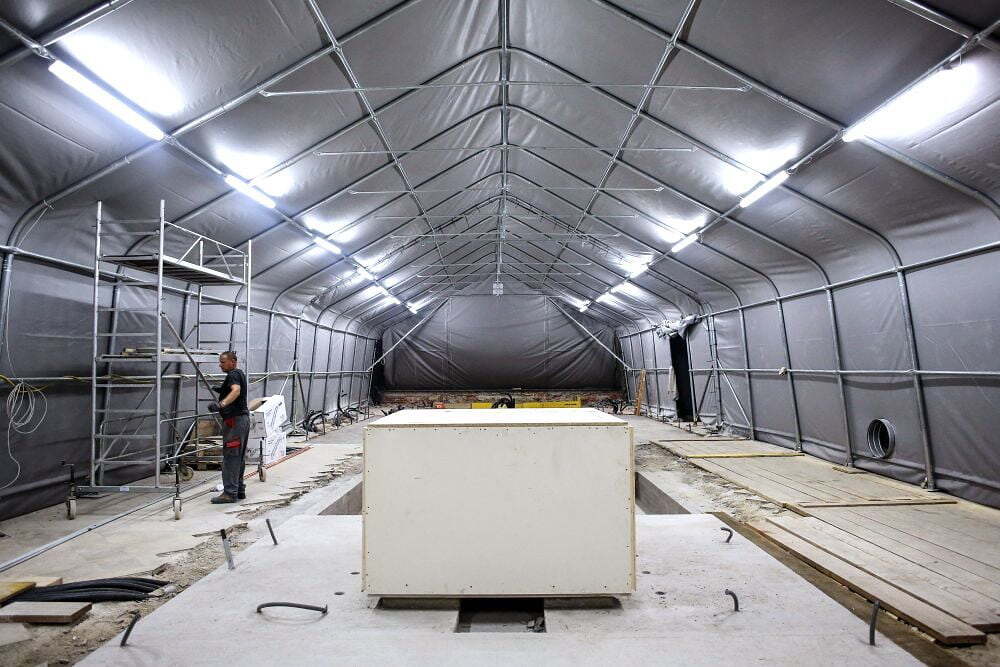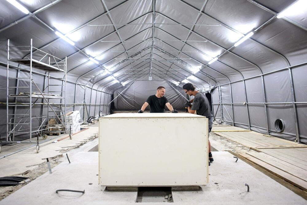 Der Altar wird sicher verpackt.
