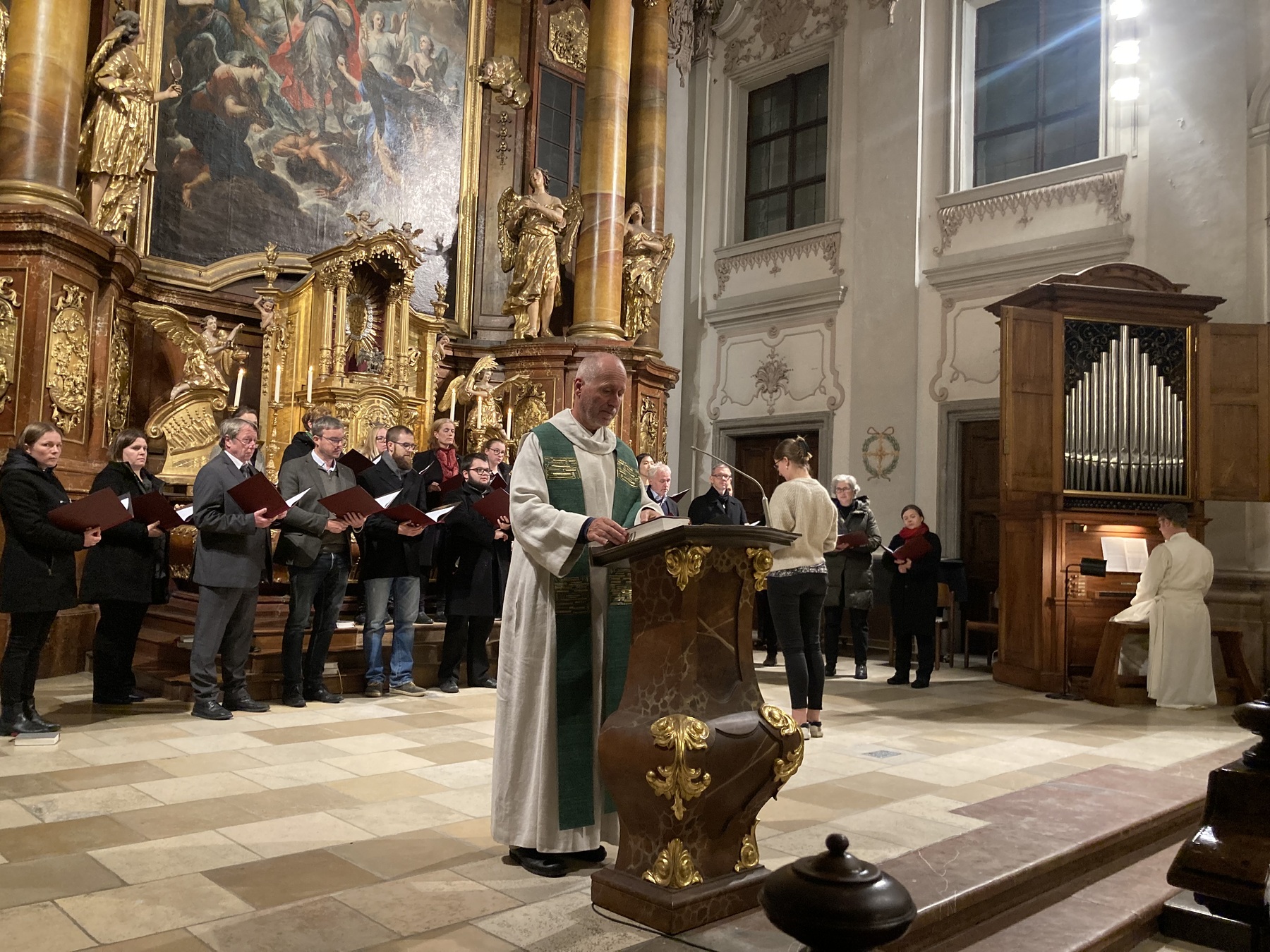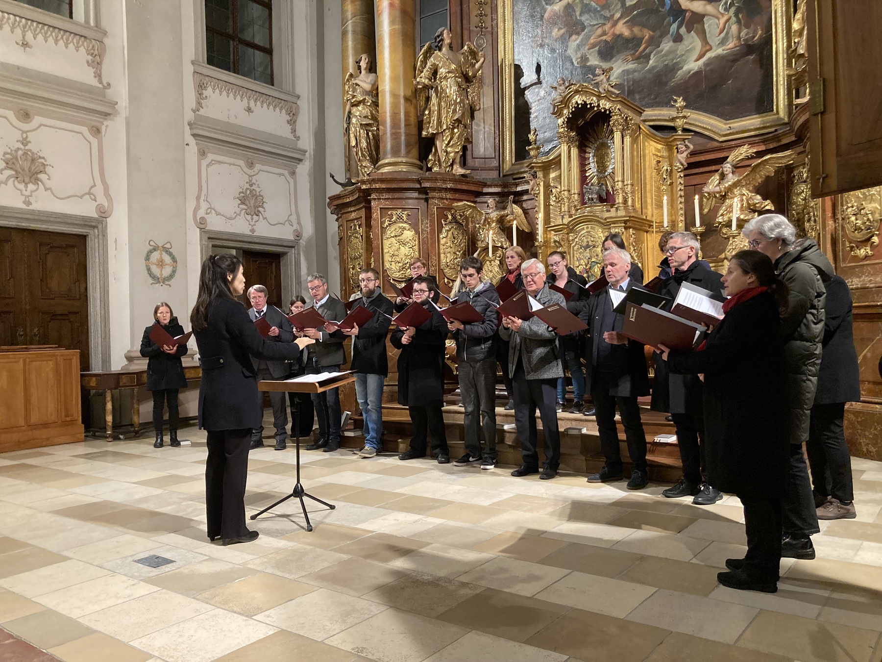 Der Gottesdienst bot den Studierenden Rosa Kirchmaier, Hee Jin Lee, Stanka Balogova und Florian Zethofer eine wunderbare Möglichkeit, Erlerntes aus dem Fach Chorleitung in der Liturgie anzuwenden.