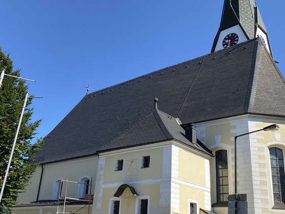 Die schwer beschädigte Eternitdoppeldeckung wurde saniert. Das zweite Projekt, die Sanierung des Hagelschadens an den Kirchenfenstern sowie die Teilsanierung der Eingangsseite der Pfarrkirche musste vorgenommen werden, ebenso Sanierungsarbeiten an den Fenstern. Die Verputzarbeiten sind Anfang Juli 2022 fertig geworden. Nach der entsprechenden Trocknungsphase wurde die Fassade im August gemalt. Geleitet wurde das Projekt von Günther Grundner von der Abteilung Kirchliches Bauen der Diözese Linz.