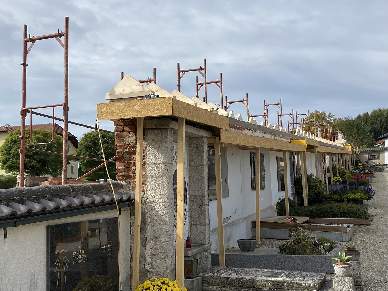 In Taufkirchen an der Trattnach wurde im September 2022 mit der Sanierung der Außenmauer des Friedhofs begonnen. Die Dacheindeckungen waren undicht, das Mauerwerk durch das Sickerwasser bereits stark beschädigt.