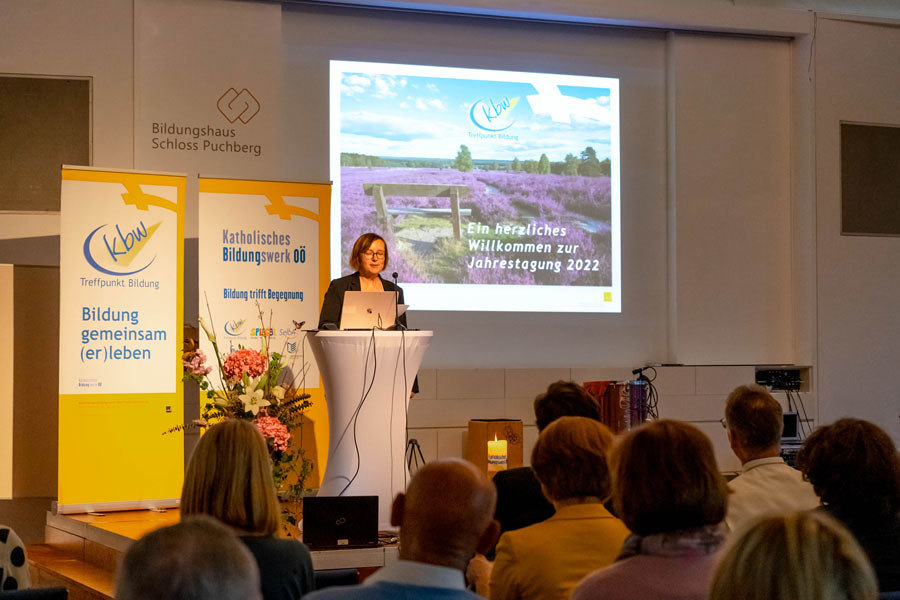 Begrüßen durfte KBW-Treffpunkt Bildung Leiterin MMag.a Michaela Wagner neben Abt Mag. Lukas Dinany vom Stift Schlägl und Pfarrer MMag. Klaus Dopler und etwa 130 Ehrenamtlichen Mitarbeiter*innen und Regionsbegleiter*innen auch