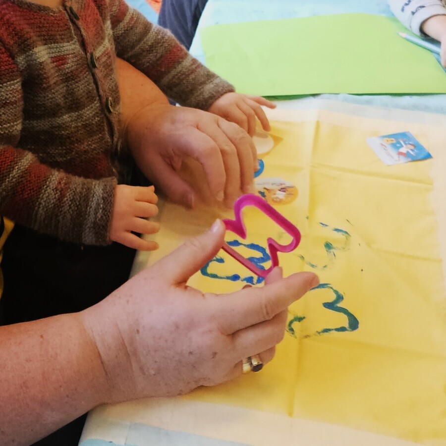 Die Kinder können sofort loslegen und die Keksausstecher in die Farbe tauchen.