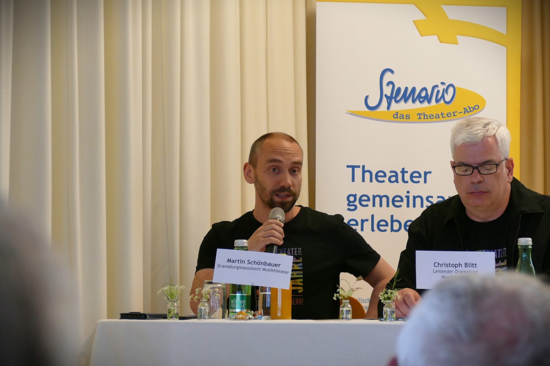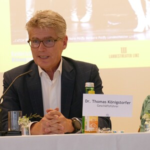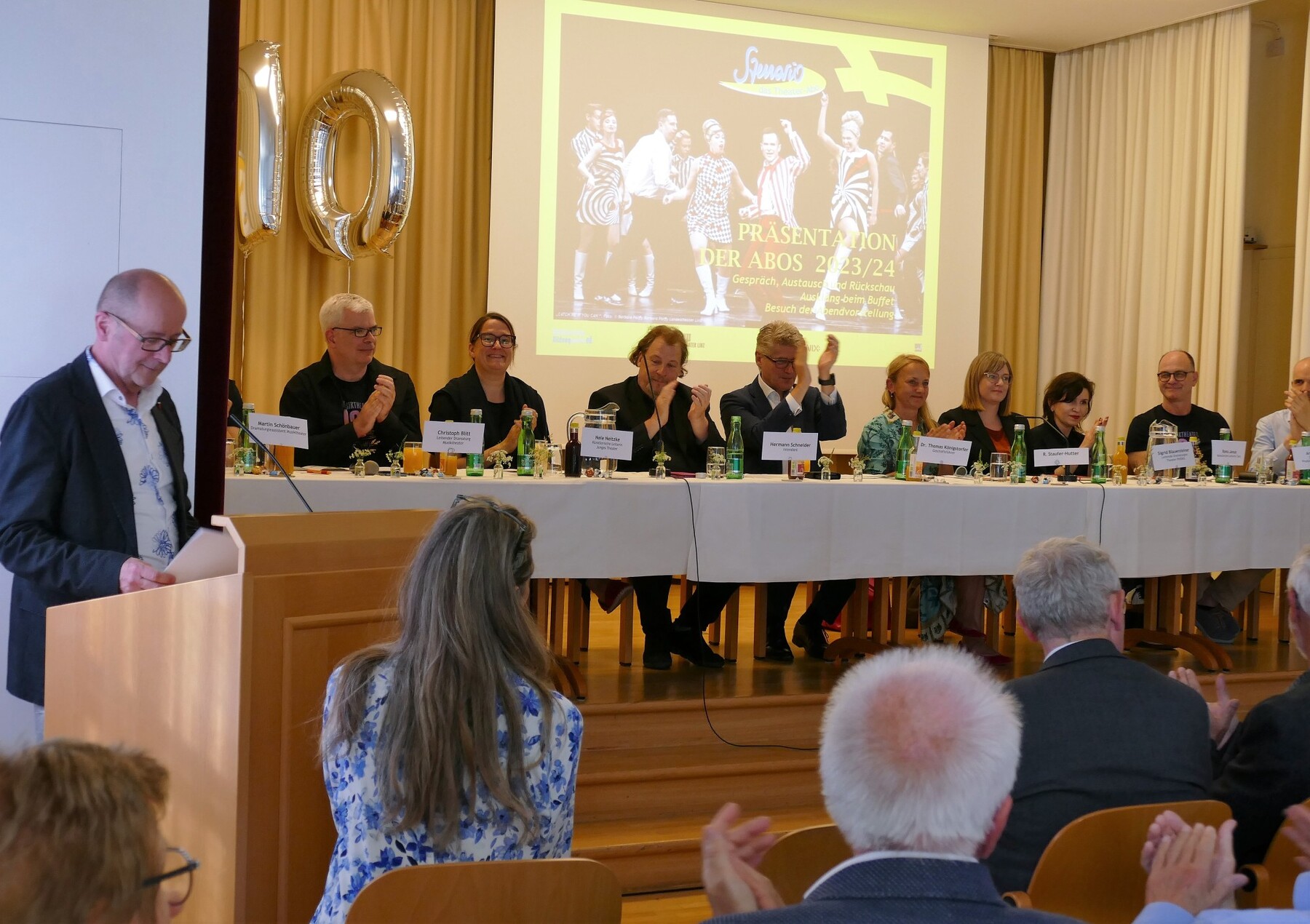 Landestheater-Geschäftsführer Thomas Königstorfer verwies auf die wertvollen Aspekte der Stützpunktleiter:innen-Tätigkeit für das Landestheater und machte auf das aktuelle, vergünstigte "Schnupper"-Angebot für neue Szenario-Abonnent:innen aufmerksam, über das schon viele Neukunden den Weg ins Landestheater gefunden hätten. (Nähere Infos im Szenario-Büro!)