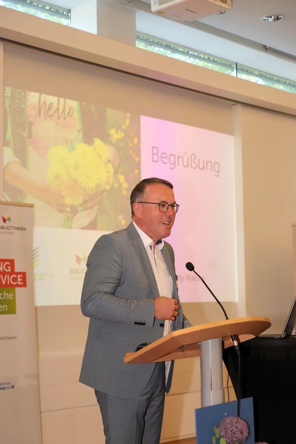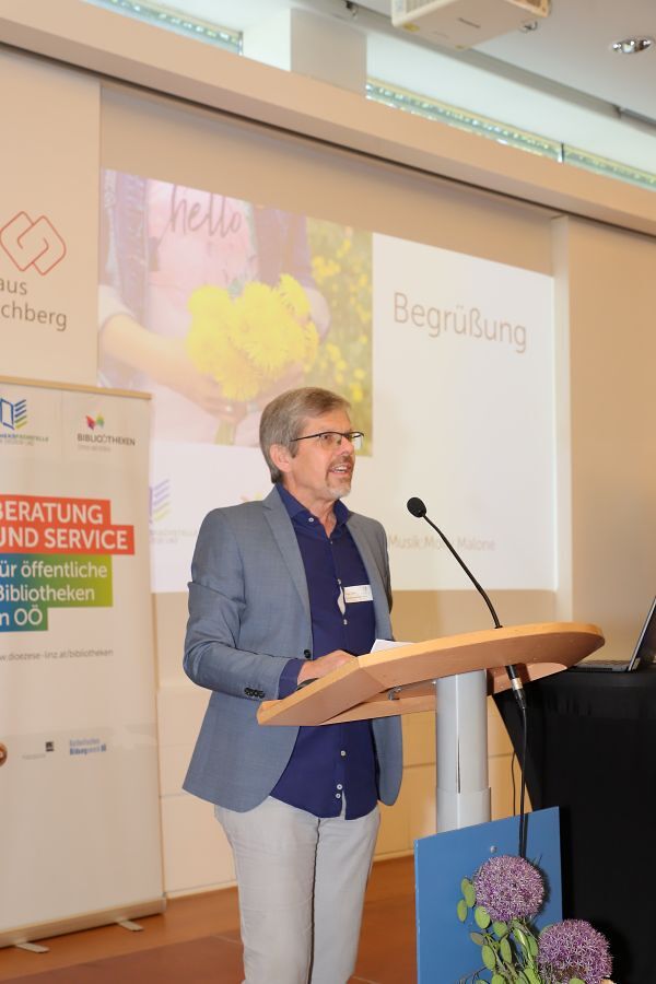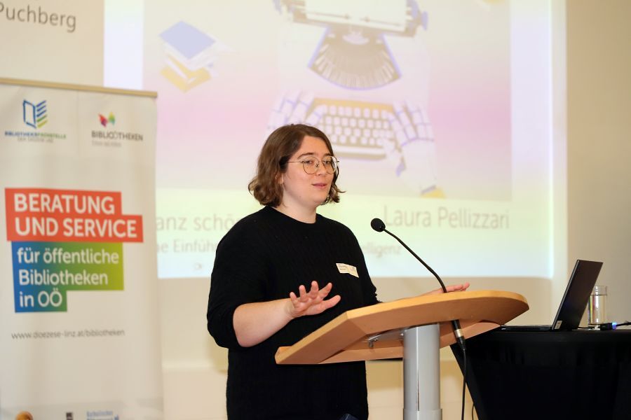 In einer Zeit, in der Künstliche Intelligenz (KI) immer mehr an Bedeutung gewinnt, legte die Bibliothekstagung den Fokus dieses Jahr auf das, was Bibliotheken wirklich lebendig macht: die Menschen. Sie standen im Mittelpunkt der Veranstaltung. KI kann durchaus in den Abläufen und Tätigkeiten in der Bibliothek unterstützen und so Zeit freispielen für Gespräche und Begegnungen. Die Erfahrungen, die Empathie und Kreativität von Menschen kann sie aber nicht ersetzen. Nur durch sie werden Bibliotheken zu Orten, wo Gemeinschaft stattfindet. Laura Pellizzari beschäftigt sich in ihrer Masterarbeit mit dem Thema Literatur und KI und bot im ersten Vortrag eine profunde Einführung ins Thema. Die oberösterreichische Kinderbuchautorin und Illustratorin Leonora Leitl sprach über die KI als kreative Konkurrenz und erzählte aus ihrem handwerklichen Arbeitsalltag. Die Leiterin der Stadtbibliothek Eferding, Leonore Geißelbrecht-Taferner, stellte ihr Projekt „Tauschkreisel“ vor, bei dem die Menschen in den Austausch kommen und die Bibliothek als Treffpunkt nutzen, und David Röthler zeigte uns spannende Beispiele, wie die KI selbst in kleinen Bibliotheken gewinnbringend eingesetzt werden kann. Zum Abschluss erzählte der oberösterreichische Schriftsteller und ehemalige Stadtschreiber von Wels, Stephan Kutzenberger, über seine Reise nach San Francisco, wo er auf Einladung von Open AI über die künstlerischen Möglichkeiten der KI forschte. Aber natürlich las er auch aus seinen Büchern, die ganz ohne KI entstanden sind.