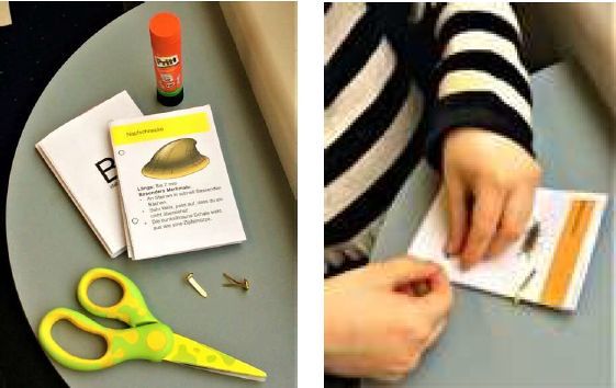 „Wassertierbestimmungsbuch“ selbst basteln. Die Vorlage dazu findet man unter: https://www.expedio.ch/thema/expedition/bach