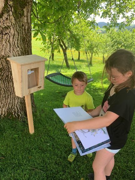 Im September 2021 wurde im Rahmen des Projekts der Weg genützt, um einen Story-Walk zu gestalten. Das Bilderbuch – Wählt Wolf – erschienen im Picus Verlag, wurde mit Genehmigung des Verlags auf die Stationen verteilt und so setzt sich die Geschichte von Briefkasten zu Briefkasten fort. Bei der zweiten Station können die Kinder selbst wählen und ihre Stimme abgeben, welches Tier sie zum neuen Chef am Bauernhof wählen würden. Das Ergebnis der Wahl (lt. Buch) erfahren sie dann beim nächsten „Briefkasten“. Bei der letzten Station gibt es dann online per QR-Code ein paar Fragen zum Buch und nochmals eine Umfrage zur Wahl. Als Belohnung können sich die Kinder einen Button mit ihren Wunsch-Kandidaten in der Bibliothek abholen bzw. mit der Button-Maschine selbst gestalten.