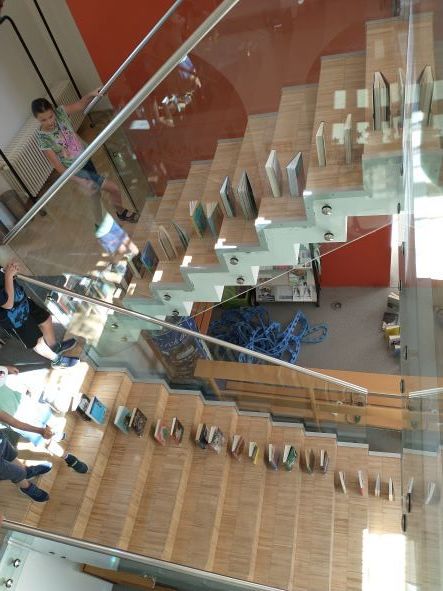Mit großem Spaß und Elan gingen die Kinder daran, aus ausgeschiedenen Büchern ein Domino quer durch das Pfarrzentrum St. Jakobus vom ersten Stock über die Treppe hinab in das Erdgeschoß zu errichten. Dabei musste sorgfältig vorgegangen werden, denn immer wieder gerieten Teile der aufgestellten Bücher vorzeitig zum Einsturz und die Arbeit musste von vorne begonnen werden. Als schlussendlich der Anstoß für das Domino der Bücher gegeben wurde, hatten Jung und Alt ihren Spaß daran. Jedes Kind durfte anschließend mit einem selbst gewählten Kinderbuch nach Hause gehen. Die restlichen Bücher wurden am folgenden Wochenende auf einem Medien-Flohmarkt im Rahmen des Pfarrfestes günstig zum Verkauf angeboten.