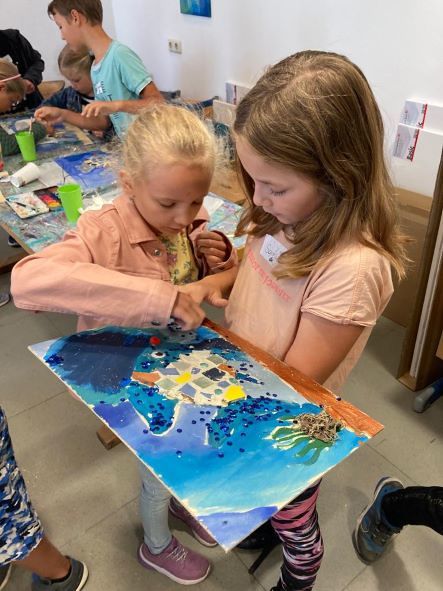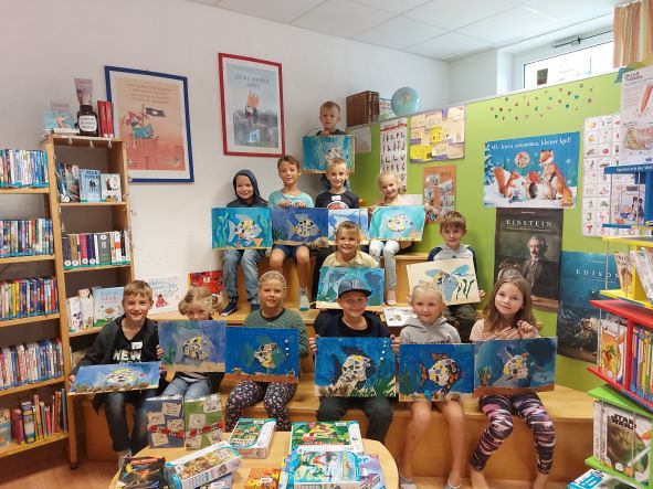 In der letzten Ferienwoche trafen sich 16 kreative Kinder in der Bibliothek Roitham und bastelten ein Bild des Regenbogenfisches. Auf einer Holzplatte wurde mit Fliesen, Glitzer und Fugenmasse der Regenbogenfisch angebracht und der Hintergrund wurde nach Lust und Laune bemalt. Natürlich kamen auch die passenden Geschichten nicht zu kurz. Aber auch eine kleine Stärkung durfte in diesen drei Stunden nicht fehlen. Alle waren sehr stolz auf das tolle Ergebnis!