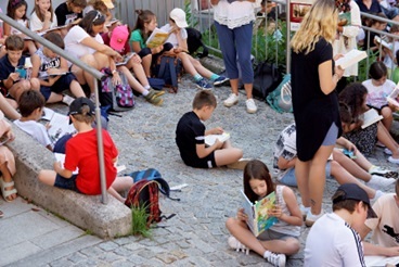 In Gmunden haben mehr als 330 Kinder aus praktisch allen Volksschulen so richtig losgelesen! Auch Bürgermeister Mag. Stefan Krapf hat sich dazu gesellt und beim LeseFlash mitgemacht. Zeitgleich fand auch in Bad Ischl ein ähnlicher Lese-Flashmob statt. Im Sinne einer babylonischen Sprachenvielfalt wurde gleichzeitig gemeinsam jeweils eine Minute lang aus unterschiedlichsten Lieblingsbüchern laut vorgelesen. Was für eine beeindruckende Kakophonie!
