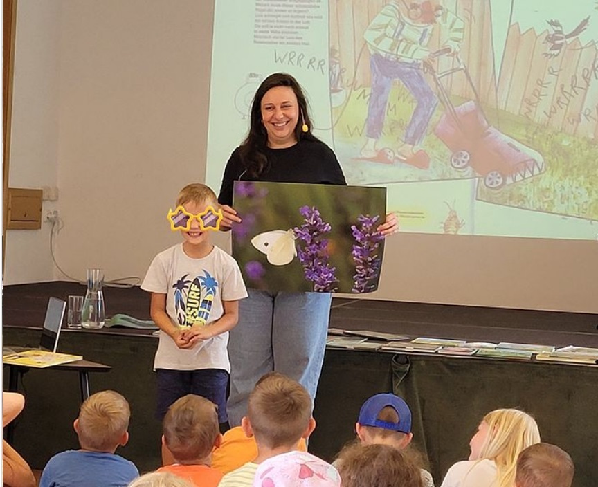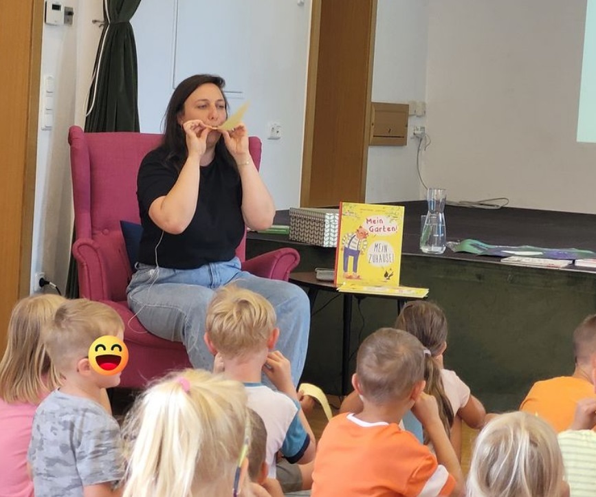 Die zweite Veranstaltung war für jüngere Kinder: eine Mitmachlesung mit der gebürtigen Bad Zellerin Johanna Schmidt zu ihrem Buch "Mein Garten. Mein Zuhause" (Achse Verlag, 2024).