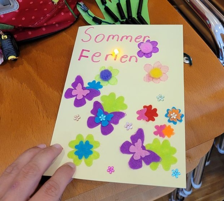 In jeweils zwei Stunden konnten die Teilnehmer:innen mittels App unseren Roboter Sally programmieren, eine Roboterhand und einen Putzroboter bauen und wunderschöne LED Grußkarten gestalten.