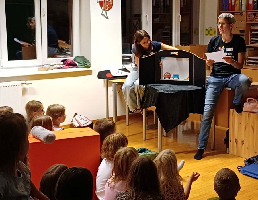 Nach einer stärkenden Kuchenjause ging das abwechslungsreiche Programm mit viel Begeisterung weiter. Höhepunkt des Abends war die Präsentation des selbst gestalteten Buches im Kamishibai-Stil.