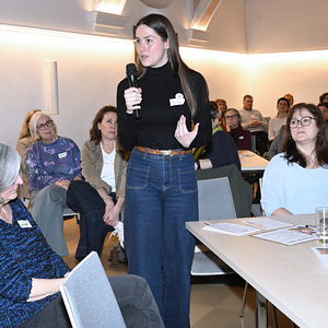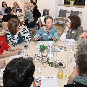 Mit einem Input von Mag.a Maria Pernegger startete der Abend sehr kurzweilig mit vielen spannenden Perspektiven zum Thema Frauenbilder, welche eine Vielzahl von Anforderungen an Frauen widerspiegelten. Fast einhundert Frauen unterschiedlichen Alters und mit unterschiedlichem Hintergrund diskutierten, nach diesem sehr interessanten Input von Mag.a Maria Pernegger, an Tischen zu unterschiedlichen Fragen. Thematisiert wurden vor allem Sichtbarkeit, Chancengleichheit, Macht , Rollenbilder zwischen Fortschritt und Rückschritt, Digitale Macht und verzerrte Bilder. Angeregt wurde an den Tischen diskutiert und ausgetauscht. Im Anschluss konnte jeder Tisch eine Frage oder ein Statement an das Podium, mit 8 Frauen besetzt, richten. Auch nach dem offiziellen Teil wurde noch angeregt weiter diskutiert bei Getränken und kleine Snacks. Der Abend war eine große Bereicherung für die Teilnehmenden, wie diese zahlreich zurück meldeten.